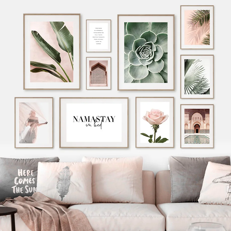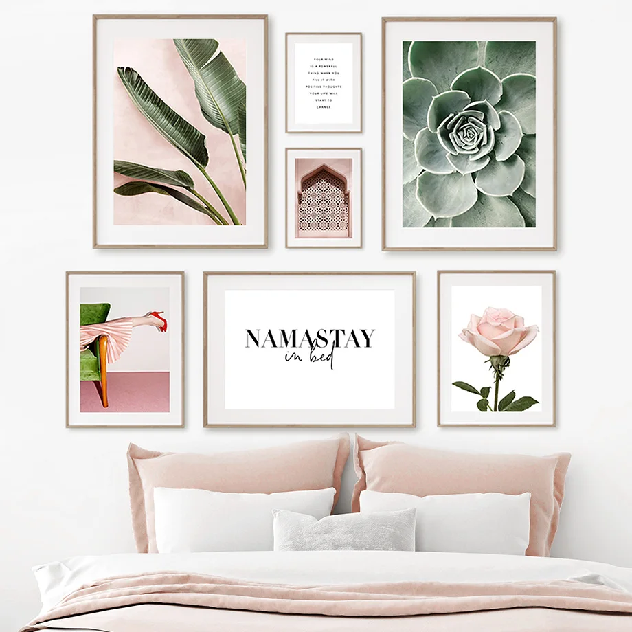 Розовые розы, женские каблуки, исламские пальмовые растения, настенная живопись на холсте, скандинавские постеры и принты, настенные картинки для декора гостиной
