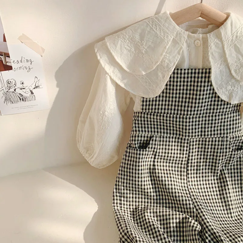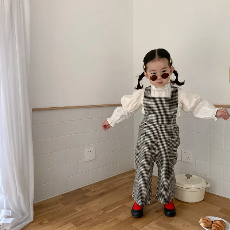 Комбинезон MILANCEL, весенний, для девочек, Повседневный, свободный, в черно-белую клетку, 2021