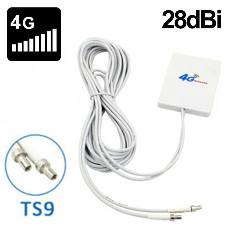 -Frequency: 700-2700MHz -Gain: 28dBi -VSWR: Less than =1.8 -Impedance: 50 ohm -Max input power: 50w -Connector: TS9 Connector -Cable type: Dual RG174 -Color: White -Material: ABS plastic -Cable length: about 300 cm -Dimensions: 73 x 52 x 8 mm -Compatible with Huawei E5375, E589, E5573Bs-320, E5786, E398, E5372, E5787ph-92a, E5787, E8372h-153, E5573s-320, E5787S-33a, E3276s-150, ZTE MF831, MF910 and more. Note: Light shooting and different displays may cause the color of the item in the picture a little different from the real thing. The measurement allowed error is +/- 1-3cm. Package includes: 1* Antenna with TS9 connector (Only the above package content, other products are not included.)