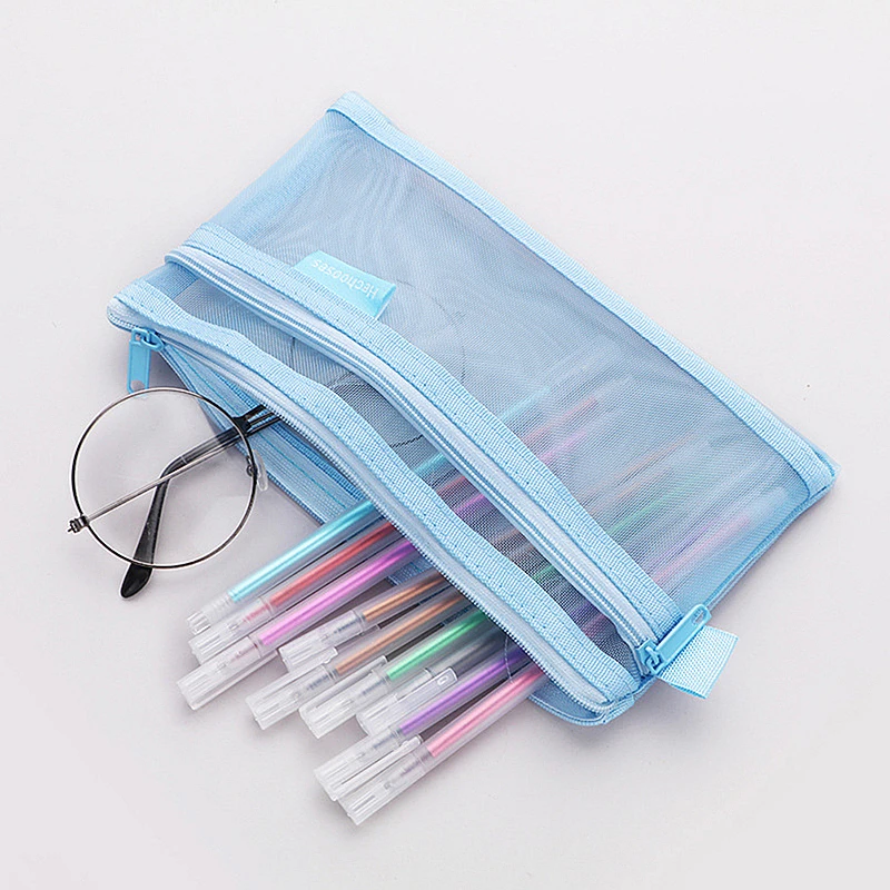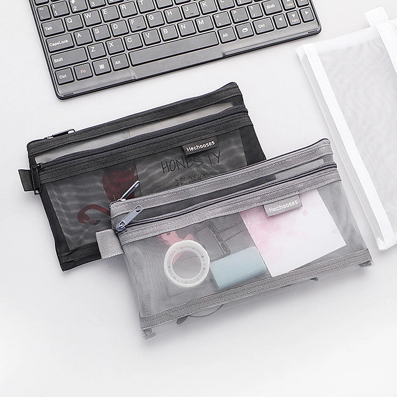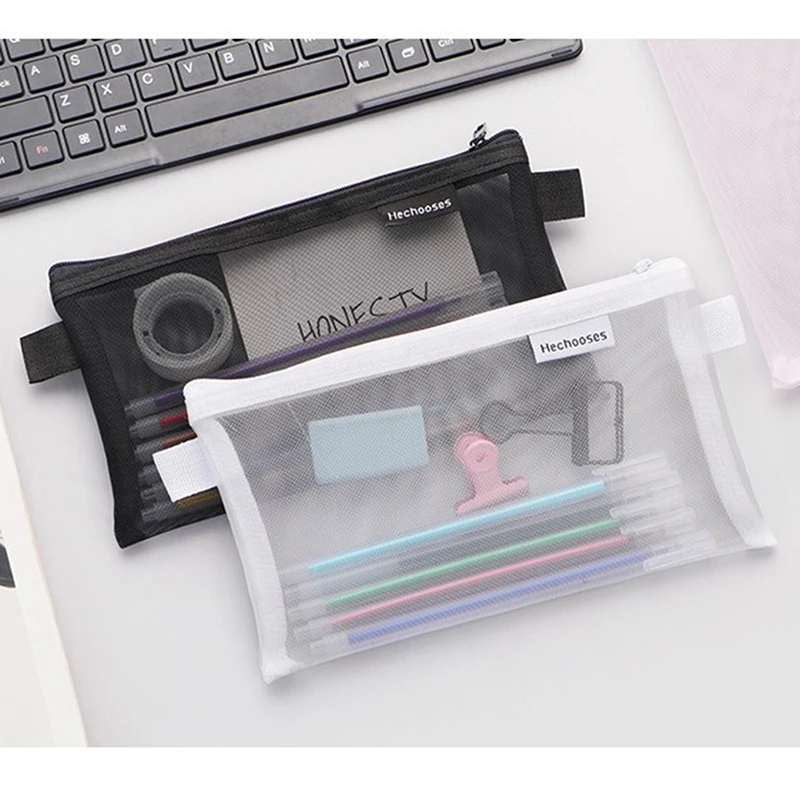 Пенал прозрачный с двойной сеткой, нейлоновый чехол для офиса и студентов, школьные принадлежности, пенал для хранения косметики и макияжа