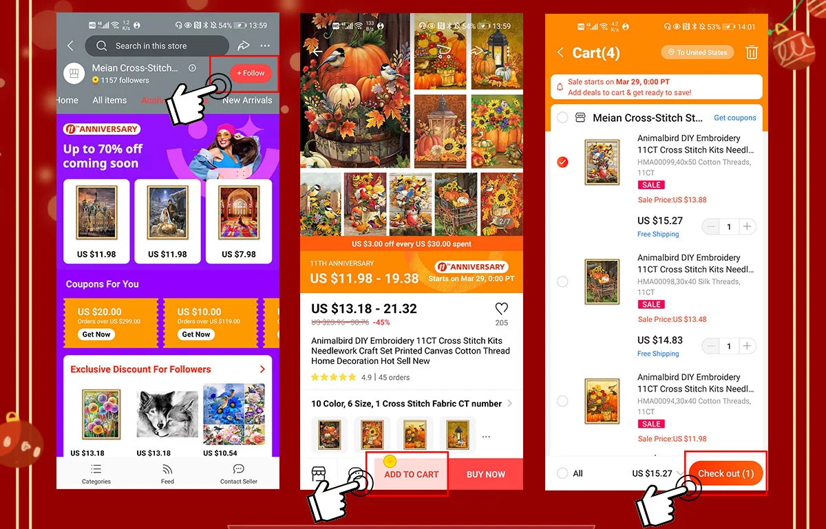 Рождественский Набор для вышивки крестиком 11CT Meian, Набор для вы...