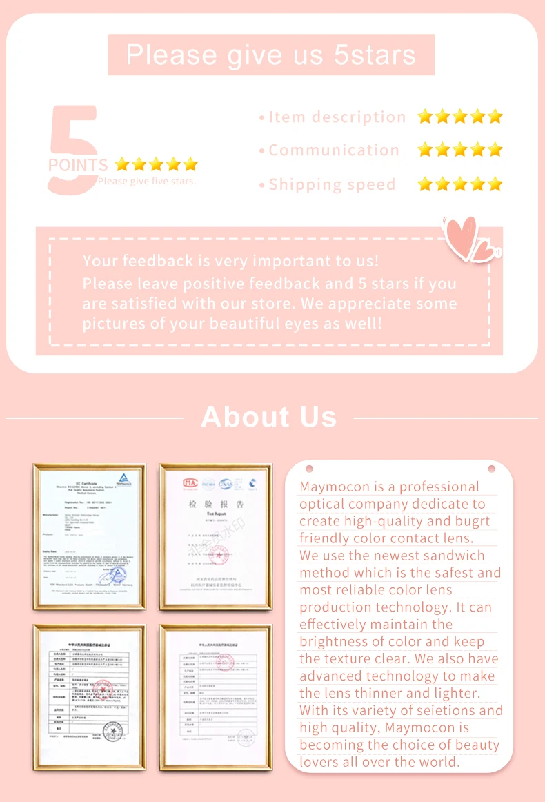заказывала две пары, тк разные дптр на глазах. каждая пара была в коробочке, которая немного помялась при транспортировке, но сами линзы несколько раз были обернуты в пупырку. я заказывала платную доставку, поэтому пришло быстро 14.08 - заказано, 28.08 - пришло в отделение. правда я заказывала в пункт выдачи, а пришло на почту. снимаю звезду за цвет, даже в баночке они нихрена не фиолетовые, а скорее серо-синие. но перекрытие хорошее, у меня карий цвет глаз. в описании указано, что это soft lenses и я уверяю, они реально софт. я носила гидрогелевые прозрачные линзы для зрения и они были жёстче, про силикон-гидрогелевые я вообще молчу. надевать их сложновато - они на само яблоко встают сразу, а на зрачок налезать не хотят ¯\_(ツ)_/¯, поковырявшись, я все же их надела. внутри коробки куча текста на китайском, но это тайна за 7 печатями, что же эти письмена значат - я в китайском ни бум-бум.