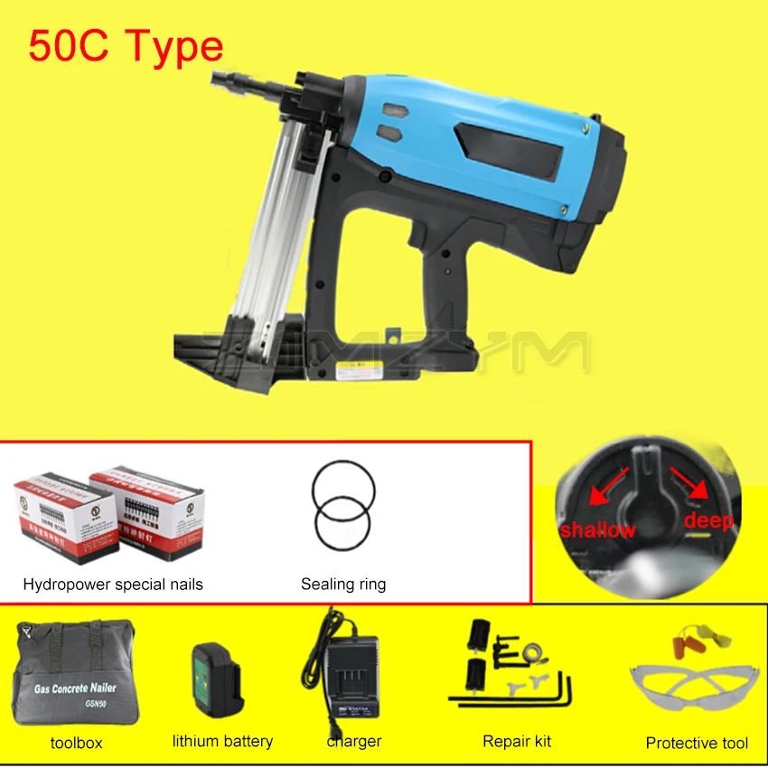 Электрический пистолет для ногтей GSN50, гвоздик для дверей и окон, бетонный, беспроводной, каркас, штапельный пистолет, легкий, портативный, с пластиковым чехлом