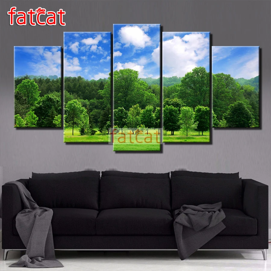 FATCAT Зеленый Натуральный лес 5 шт. Diy алмазная живопись полный квадратный круглый дрель Алмазная вышивка продажи домашнего украшения AE2714