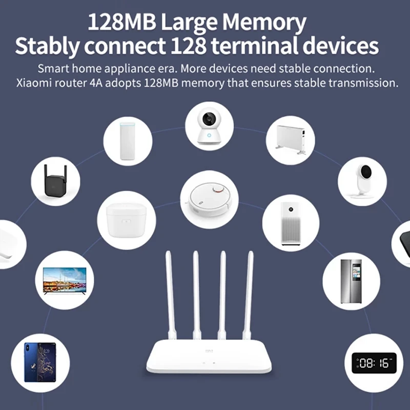 Роутер Xiaomi Mi 4A Gigabit Edition, 2,4 ГГц, 5 ГГц, двухдиапазонный, 16 Мб ПЗУ + 128 Мб DDR3, беспроводной Wi-Fi с высоким коэффициентом усиления, 4 антенны, управление через приложение