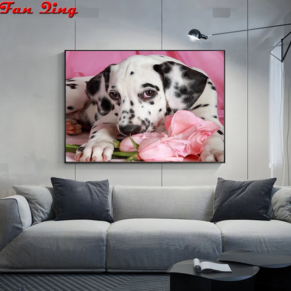 Diy 5 D Алмазная вышивка далматинская и Роза картина полная квадратная/круглая Стразы Вышивка крестиком Мозаика Искусство домашний декор