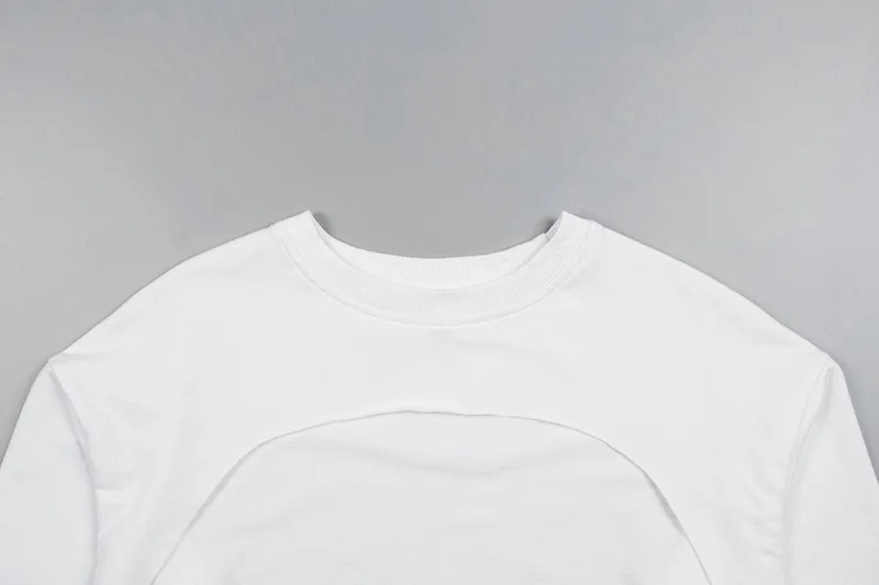 Сексуальный укороченный топ с вырезом для женщин Летняя мода 2022 г. с круглым вырезом нерегулярная футболка с длинным рукавом Белые и черные наряды Женские короткие топы