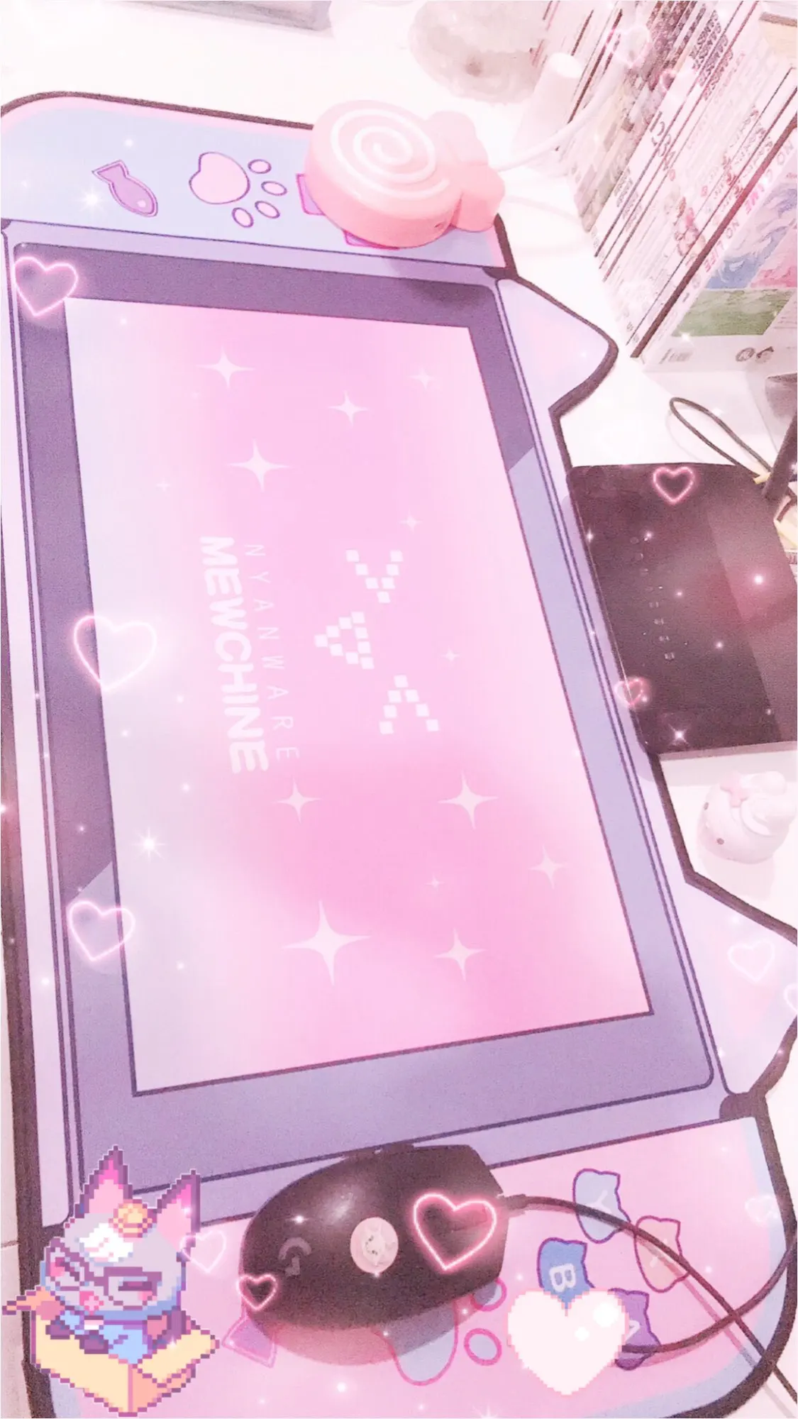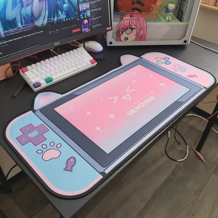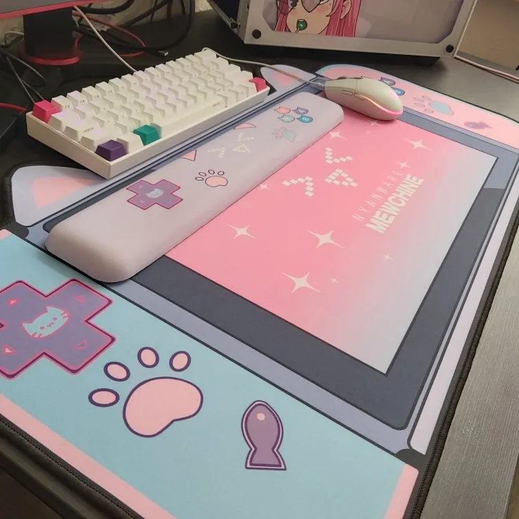 Большой коврик для мыши, с кошачьими ушками, плотный, нескользящий, розовый, для девочек, для игр, для мальчиков, 80 см х 40 см