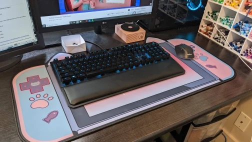 Так мило! Подставка на запястье очень мягкая, и мне нравится, как она выглядит на моем столе