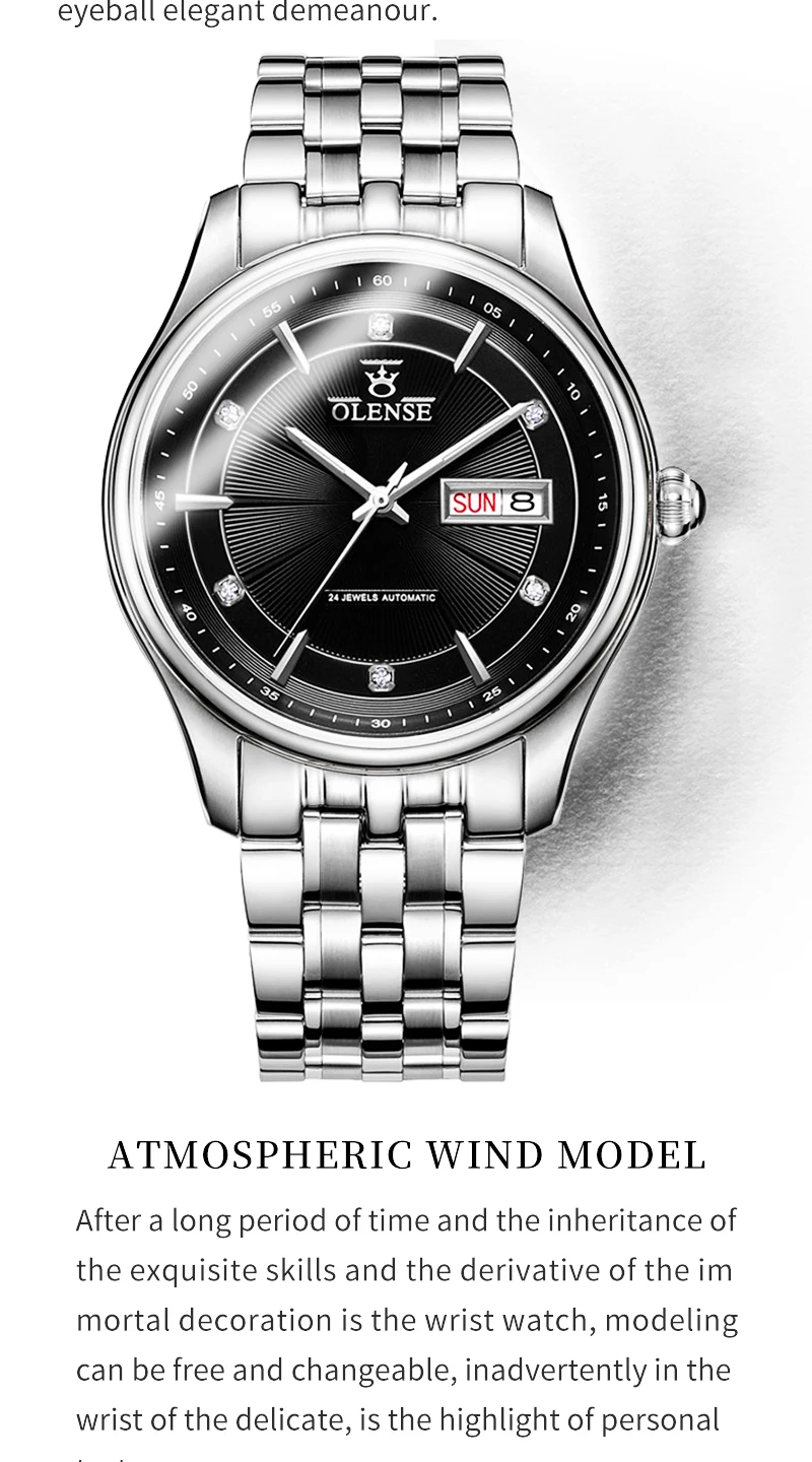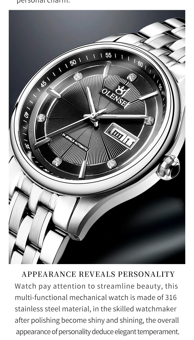 OLENSE японский двигаться Для мужчин t SEIKO NH36 часы Для мужчин сапфировое стекло автоматические механические часы, для мужчин, указание даты, счетчик недель, Нержавеющаясталь ремень
