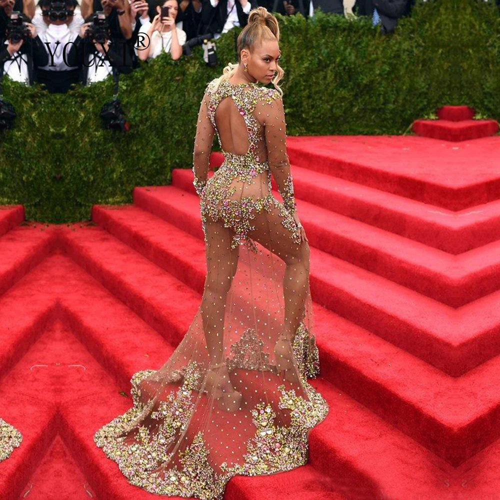 Соблазнительные платья знаменитостей Бейонсе с красной ковровой дорожкой, соблазнительные прозрачные платья из тюля с бусинами и кристаллами, роскошное вечернее платье