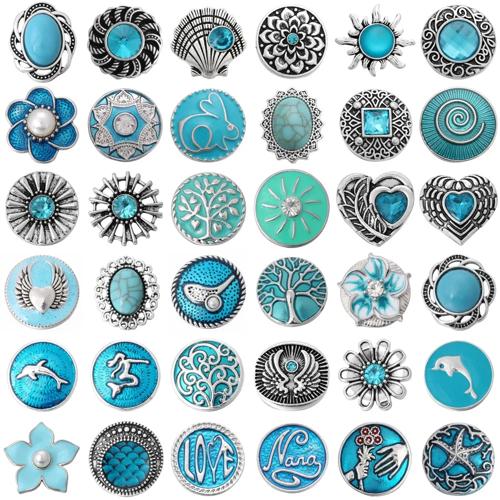 6 шт.лот новые ювелирные изделия со стразами небесно-голубые защелки 20 мм 18 мм Металлические Кнопки подходят для самодельных металлических кнопок, браслетов, ожерелий