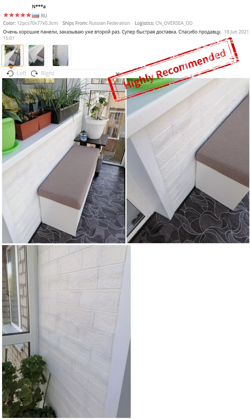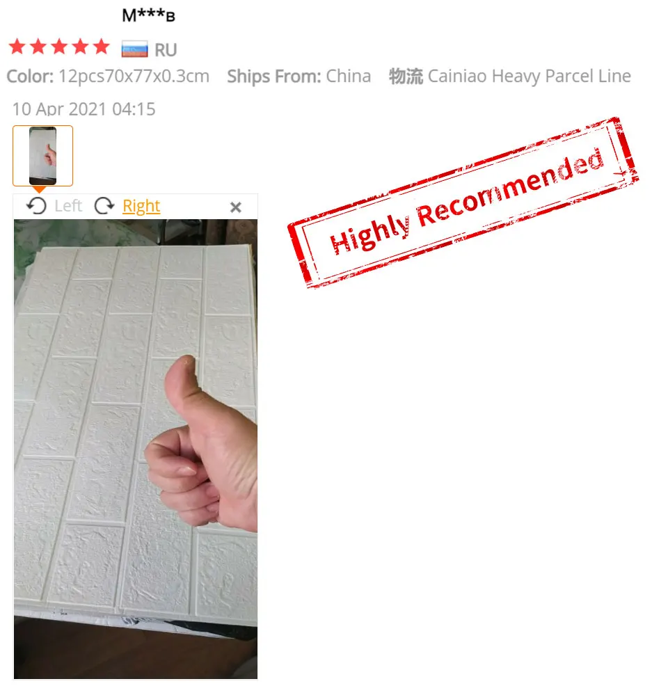 я уже покупал такие панельки у другого продавца и конечно удивлён что они намного тоньше чем я уже использовал, осталось только попробовать поклеить и проверить клеевой состав и посмотреть как это все будет выглядеть. по доставке - все очень быстро, курьер доставил прям домой