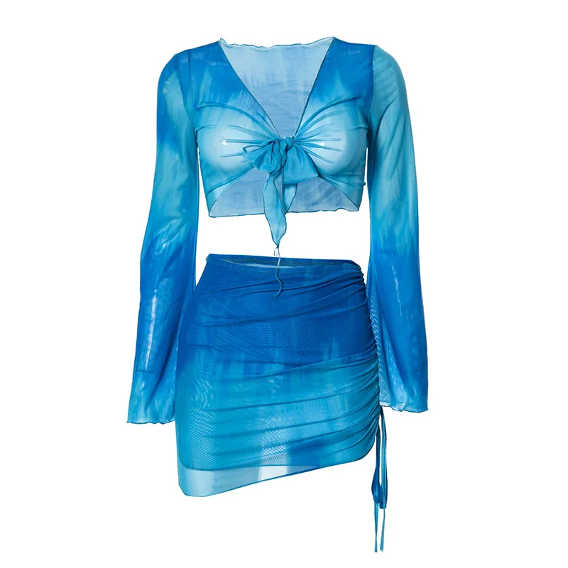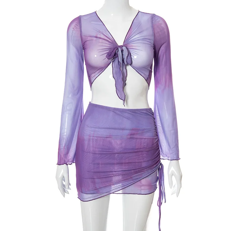2021 сексуальный бикини с галстуком-краской, 2 предмета, сетчатый к...