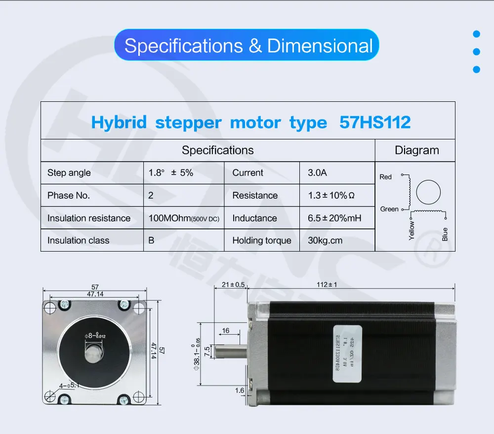 Шаговый двигатель 3A 57HS112-3004 4A 57HS112-4004 4.2A 57HS112-4204 Nema23 425ozin, одновальный или двухвальный 6,35 мм8 мм