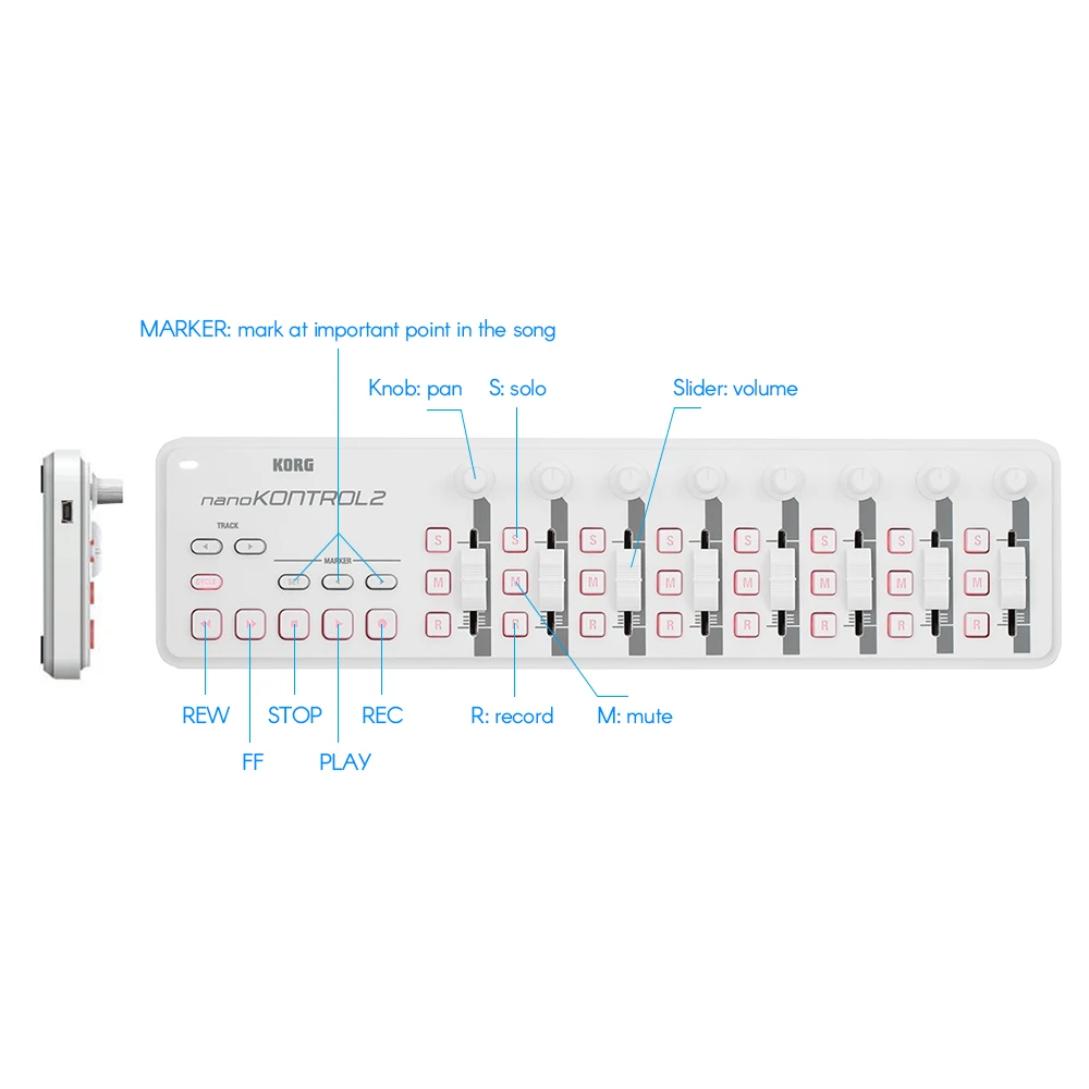 Тонкая линия управления USB KORG KONTROL2, портативная поверхность управления MIDI с USB-кабелем