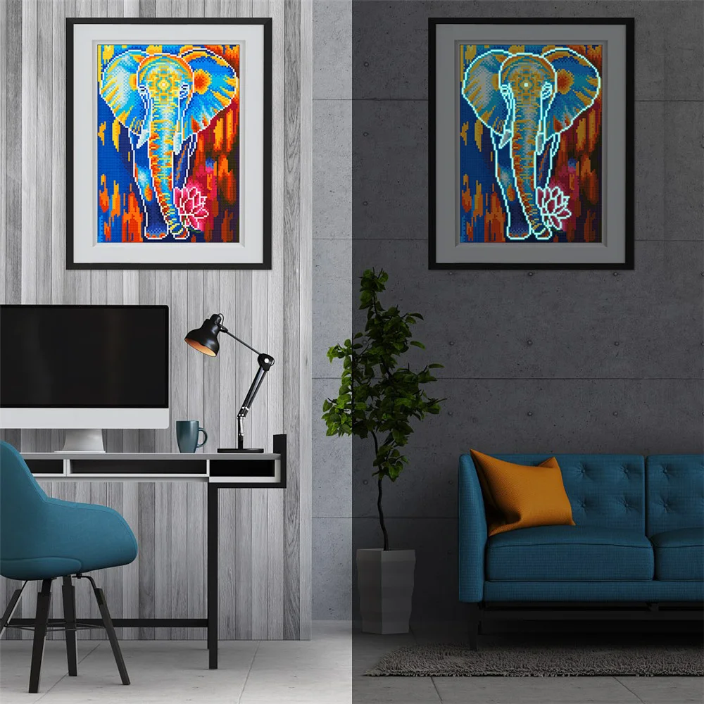 Алмазная вышивка Слон, круглые светодиодные ночные светсветильник л...
