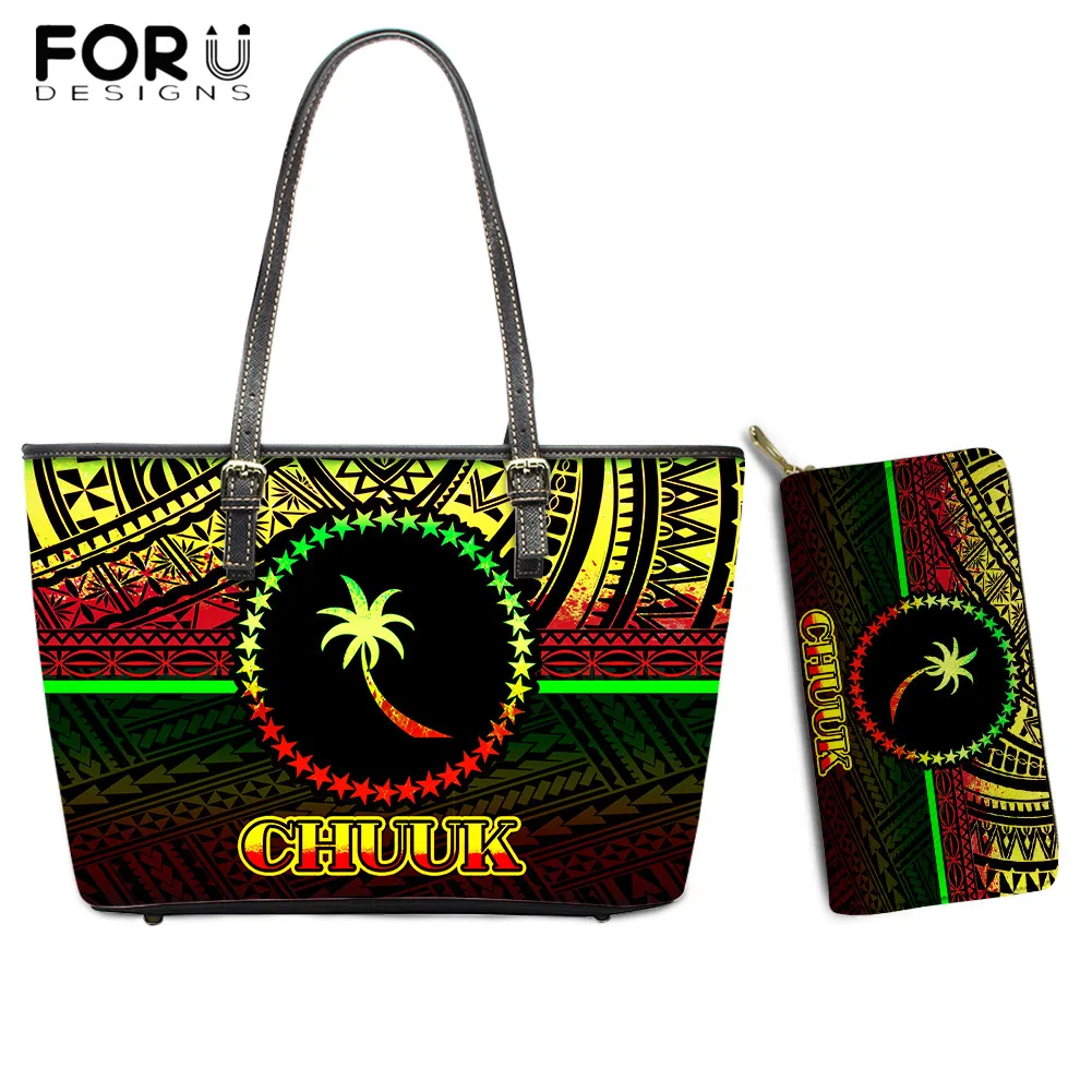 Женский элегантный комплект с ручками и сумочкой FORUDESIGNS, большой топ с принтом традиционного племени Chuuk, роскошная сумка, чехол для денег
