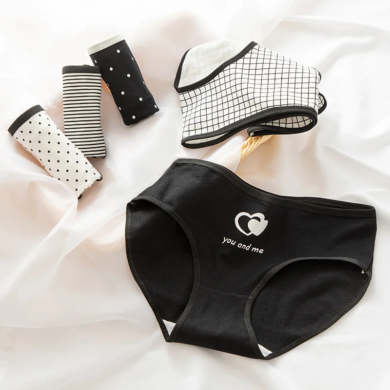 Высококачественные комплекты одежды из 3 предметов в черно-белую полоску трусы клетчатое нижнее белье для девочек, нижнее белье из мягкого хлопка розовые трусы штаны для девочек в горошек сексуальное женское белье