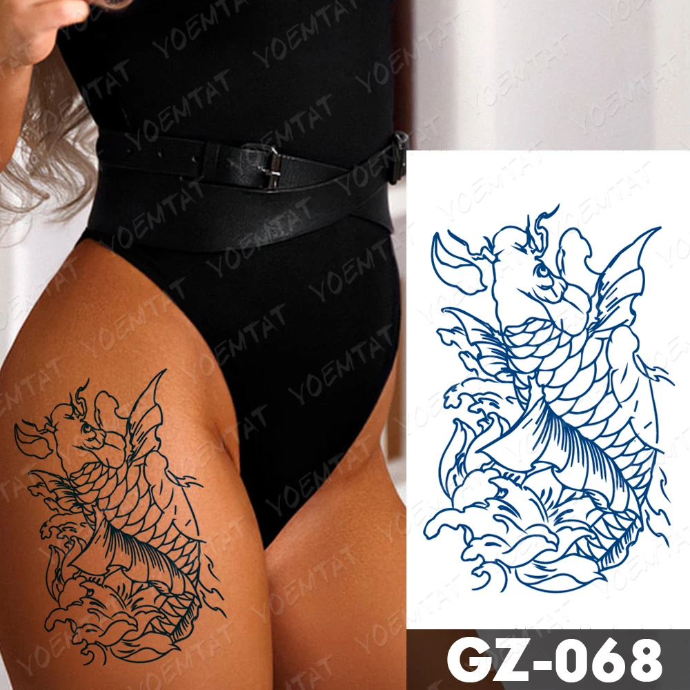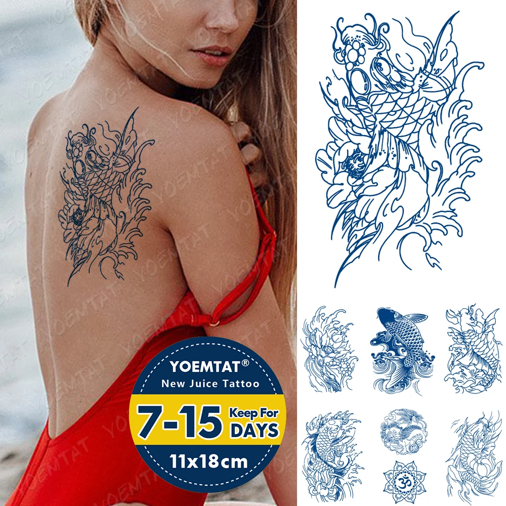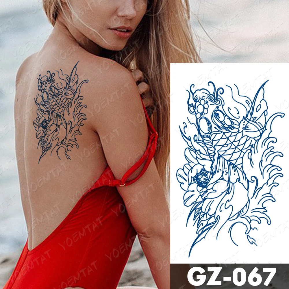 Сок чернила татуировки, боди-арт прочного Водонепроницаемый временная татуировка Стикеры Япония Карп Тотем тату для рук поддельные линия лотоса татуировки золотого и серебряного Для женщин