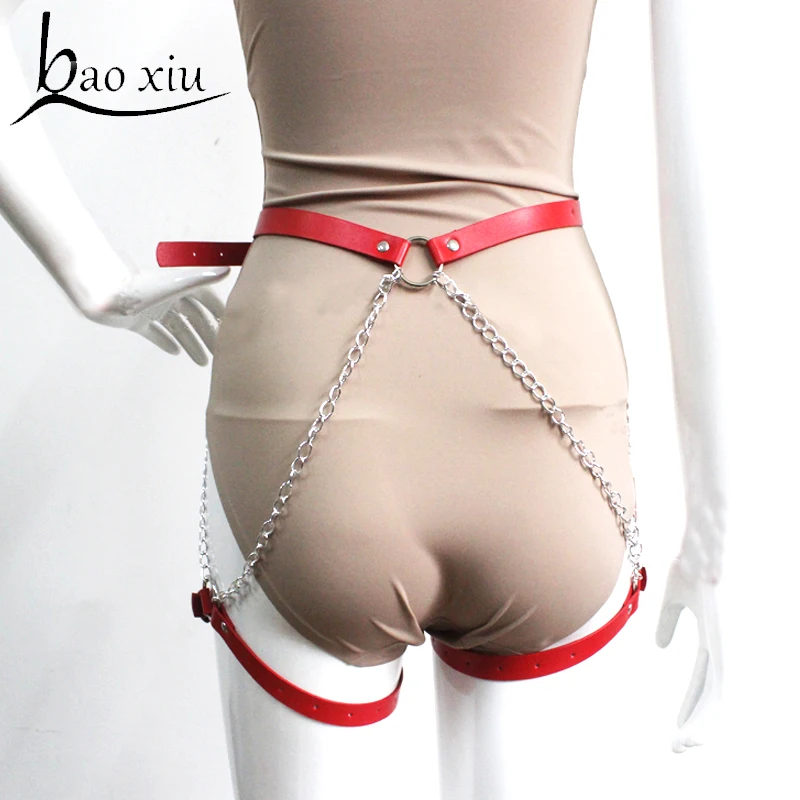 Винтажная Женская и мужская эротическая портупея Baoxiu из искусственной кожи, бандаж, готические панковские сексуальные подвязки для ног, металлические цепочки, бедра
