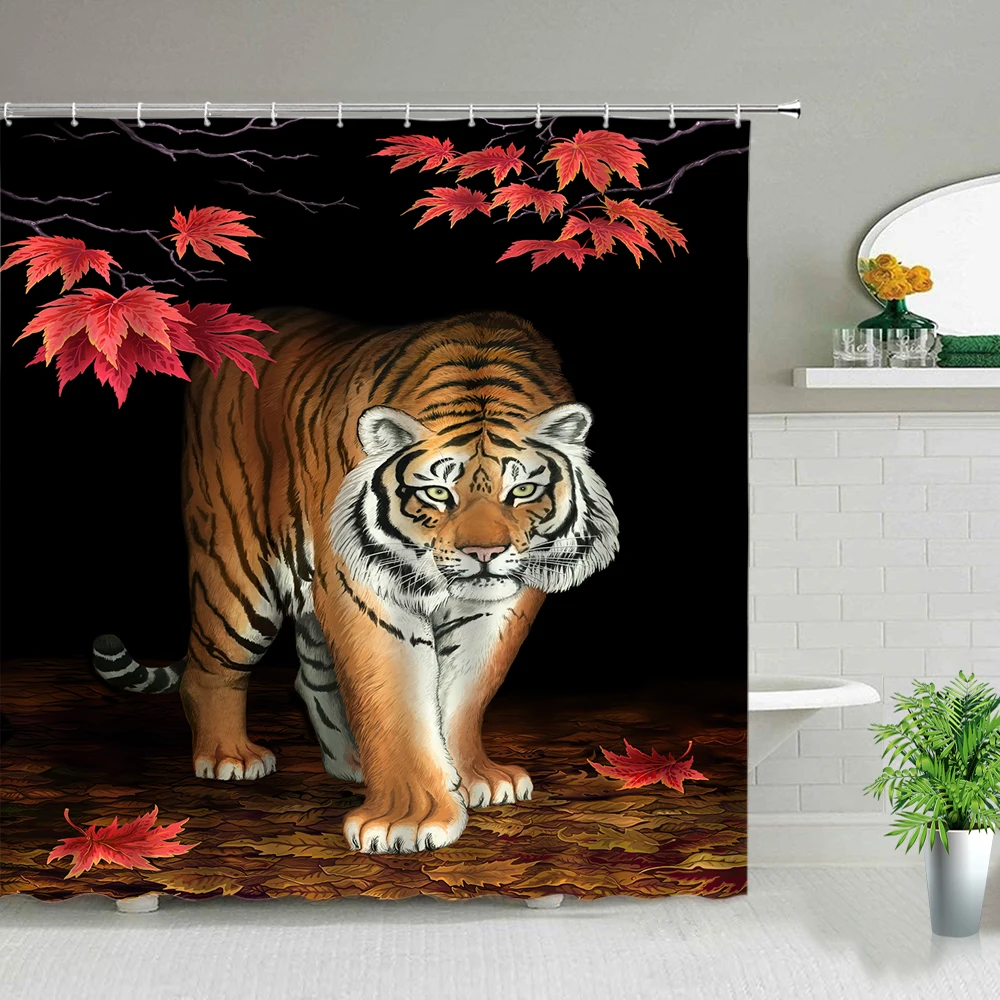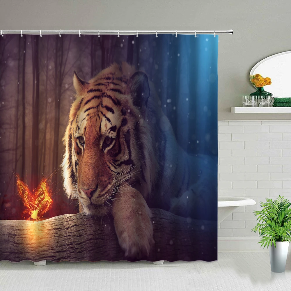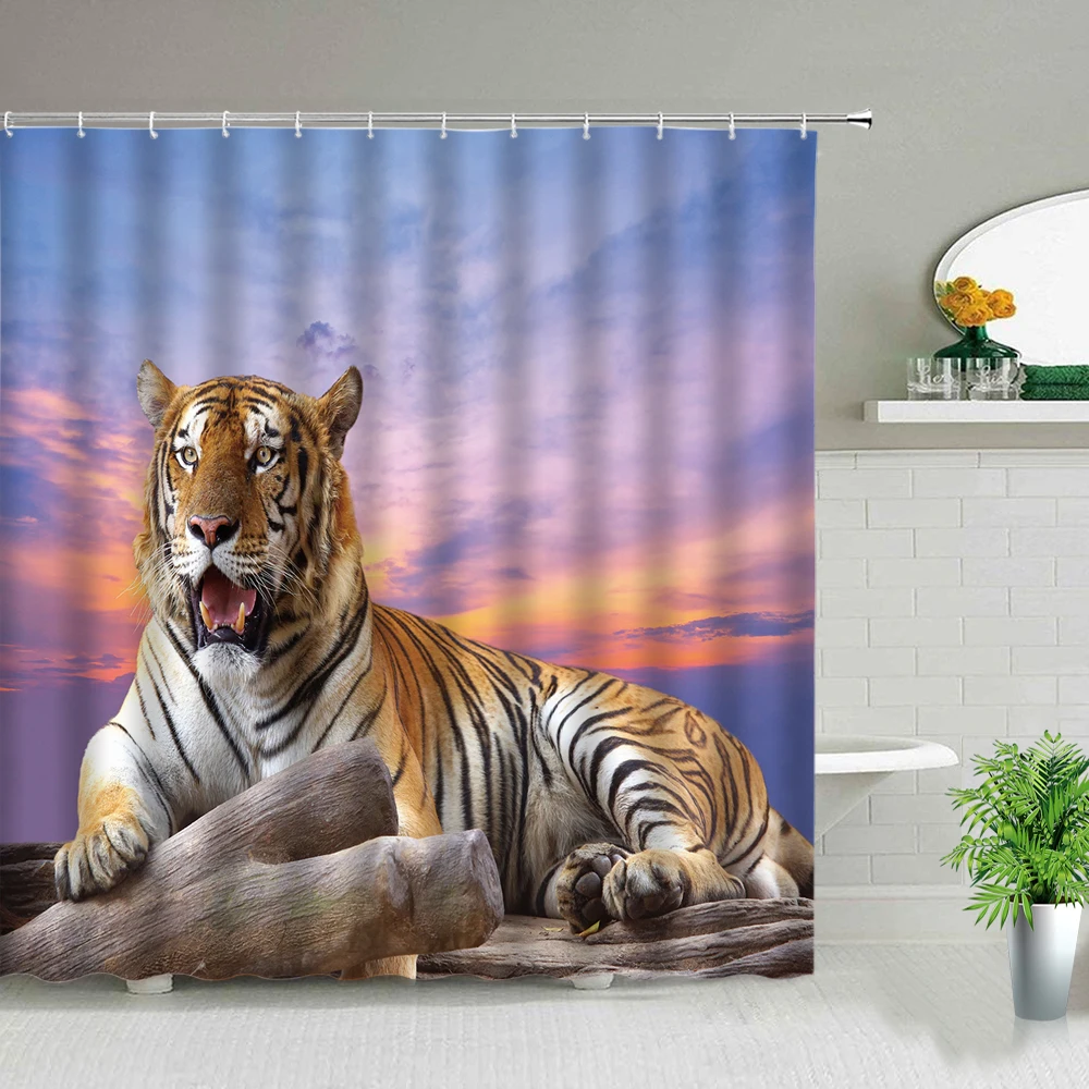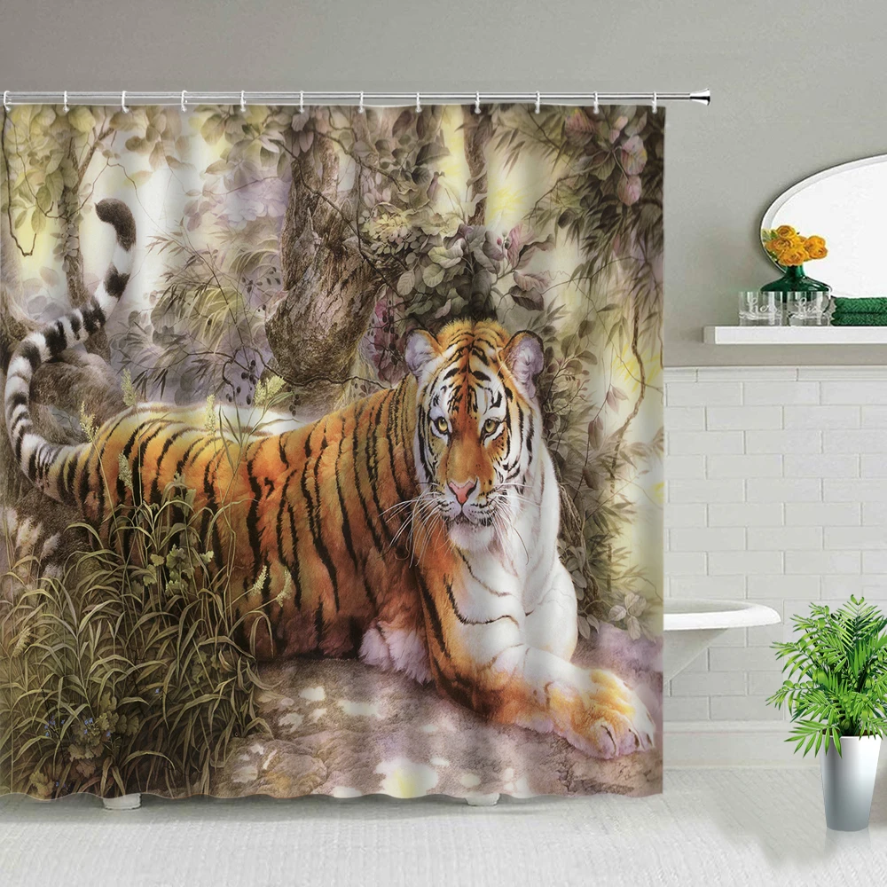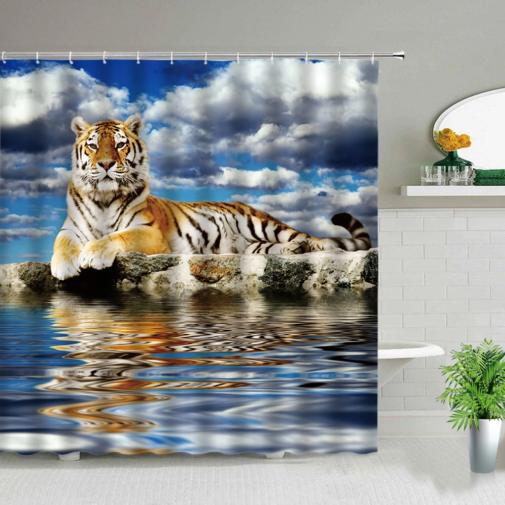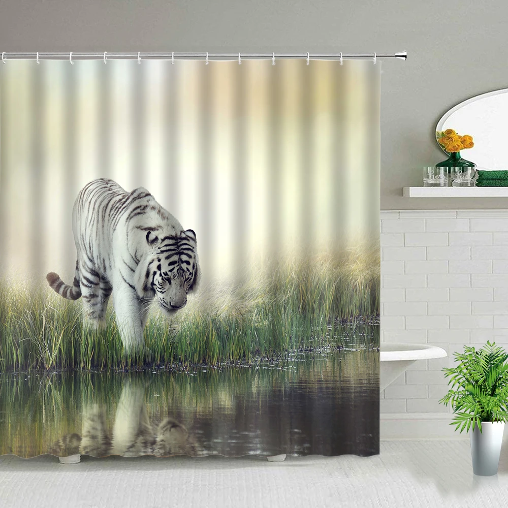 Весенний пейзаж водопада, Африканский Тигр в воде, занавеска для душа, занавеска для ванной с принтом диких животных, домашний декор, подарок для мальчиков, занавеска s