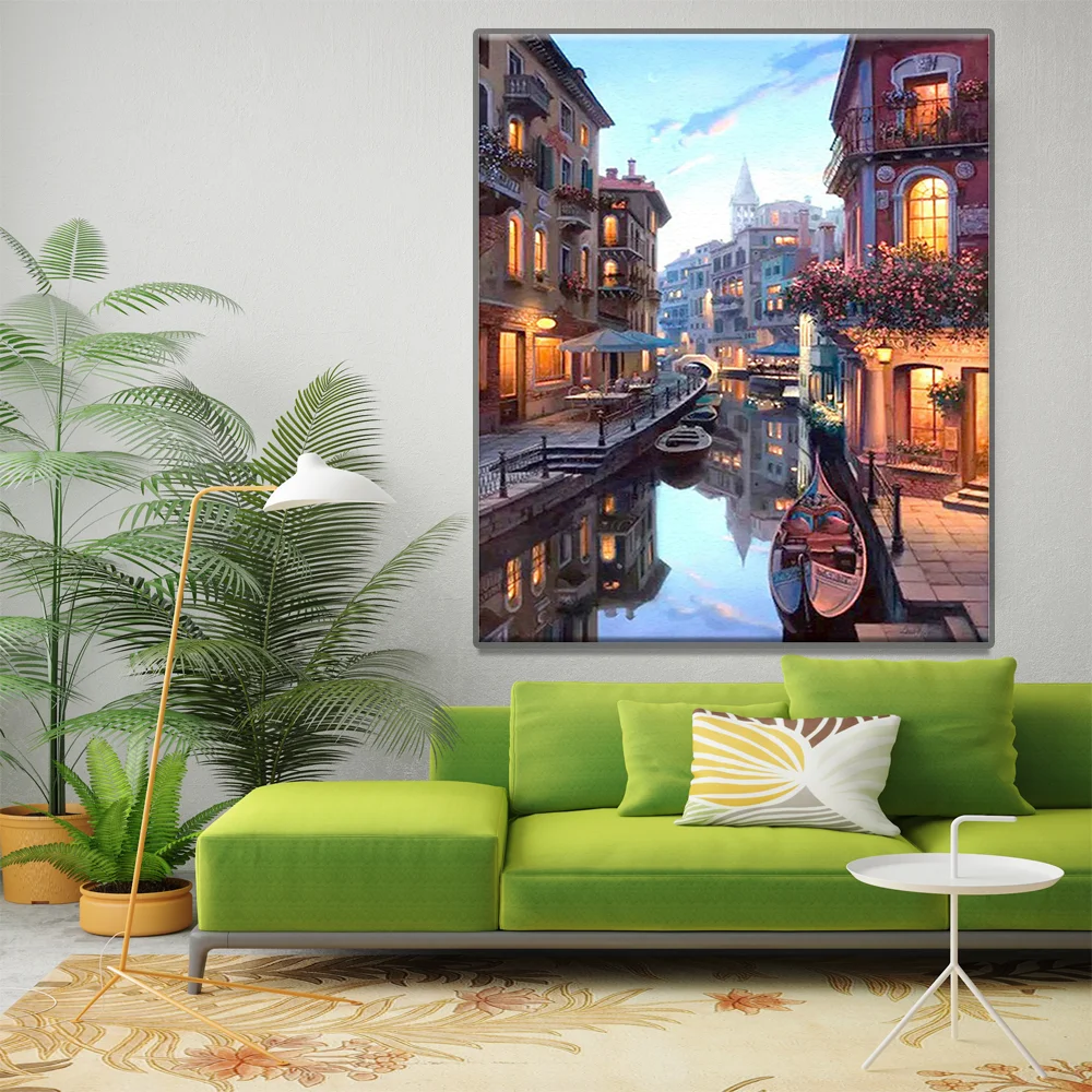 Полная Алмазная Вышивка Венеция ночной украшения в форме ландшафта Вышивка крестом алмазная живопись комплект домашний Декор наклейки на стену ремесел искусства