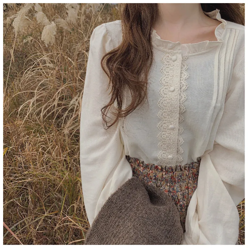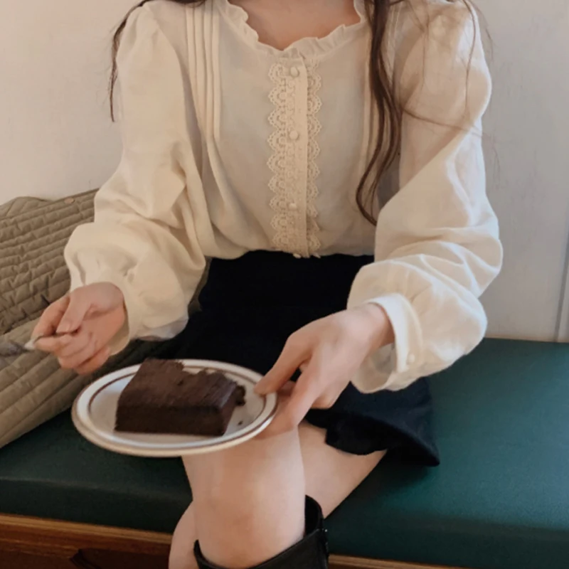 Уникальная кружевная Лоскутная Блузка Lamtrip 2021 с оборками на воротнике