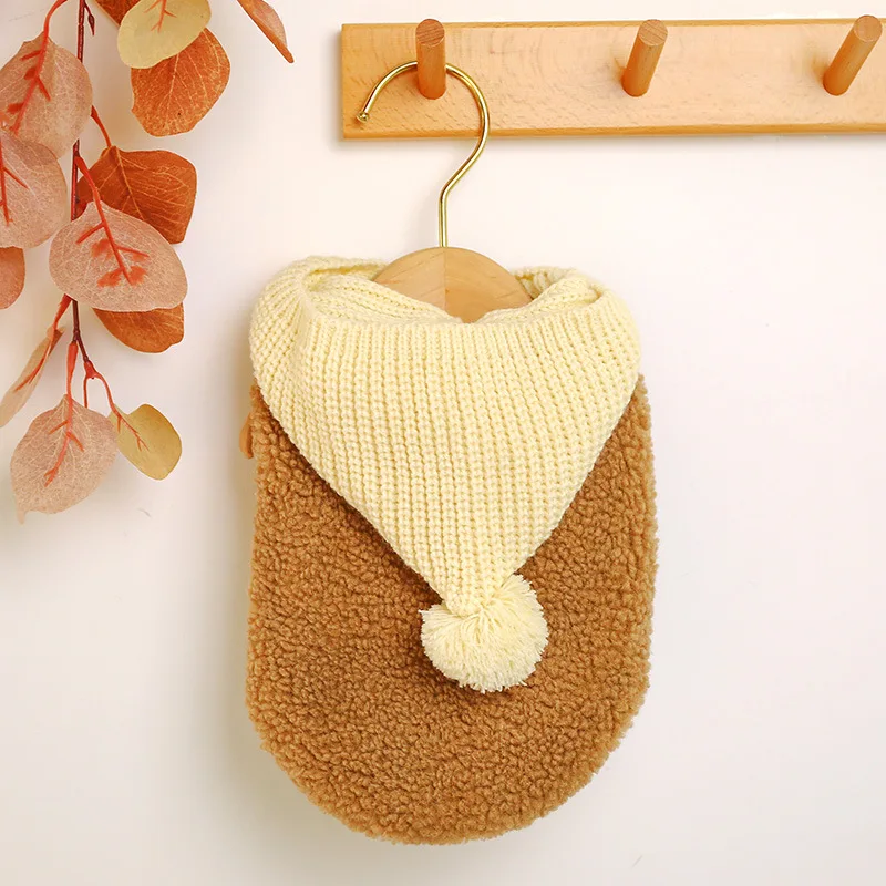 Новинка теплая осенне-зимняя одежда для собак и кошек плюс бархатная Тедди бишон одежда из овечьей шерсти шапка жилет шапка и меховая одежда