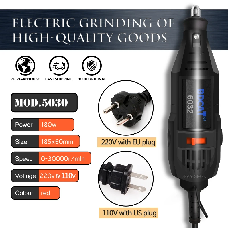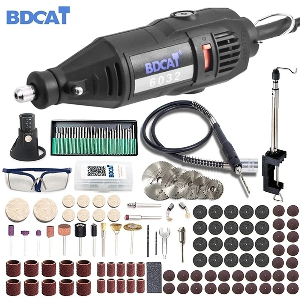 Электрический Роторный шлифовальный станок BDCAT 180 Вт Dremel, мини-дрель, шлифовальная гравировальная ручка, полировальная машина с аксессуарами для электроинструментов