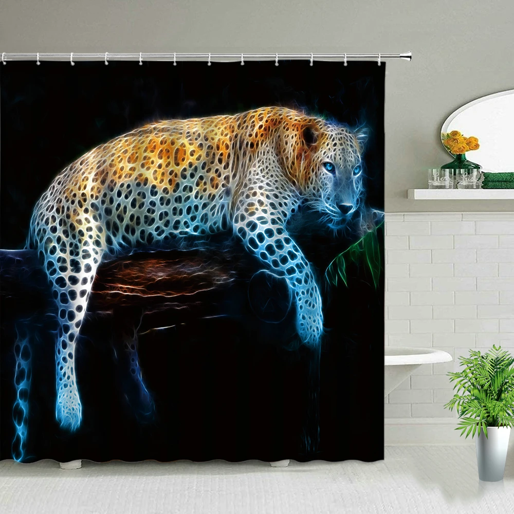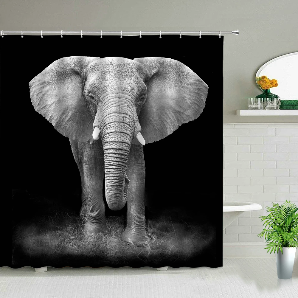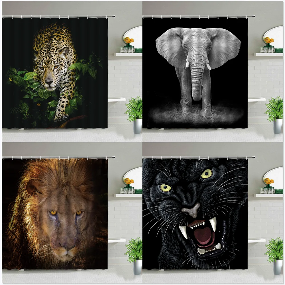 Черный фон Африканский слон леопард лев узор душевая занавеска набор диких животных принт ванная комната Домашний Декор подарок занавеска для мальчиков s