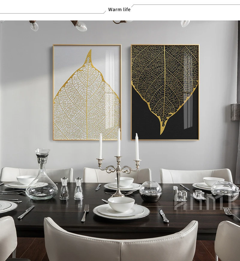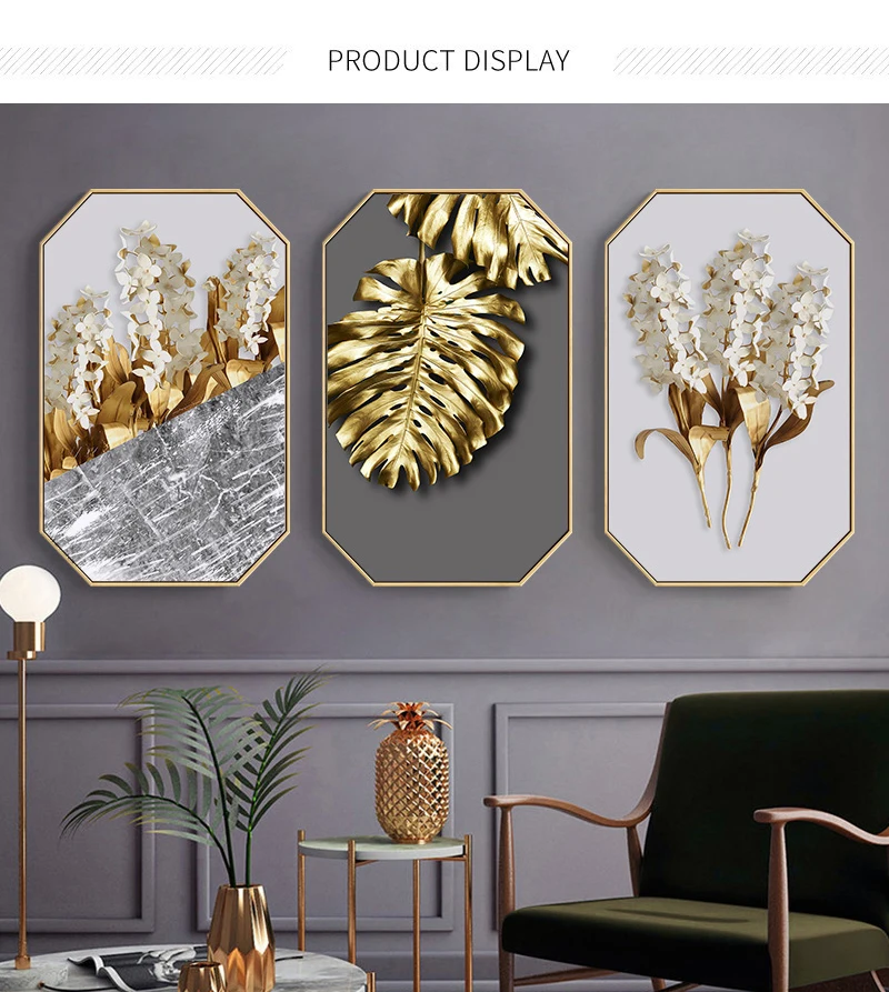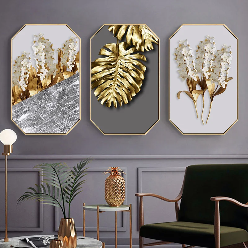 Золотые листья, роскошный современный декор для гостиной, картина д...