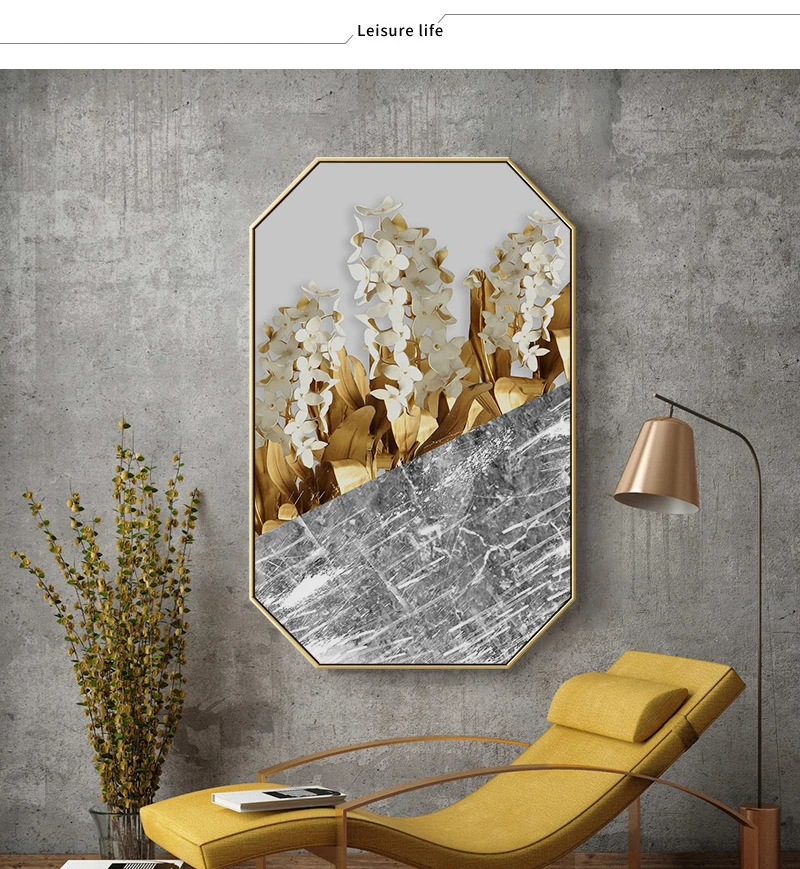 Домашний декор, картина с золотыми цветами, настенное художественно...