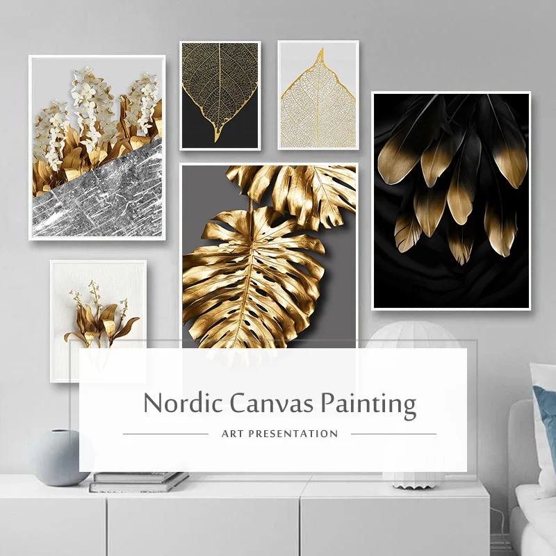 Золотые листья роскошный абстрактный Декор картина для дома настенный художественный Декор принт растение плакат минималистский настенный фон Картина на холсте
