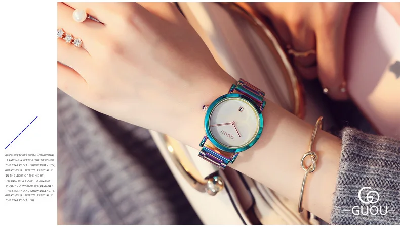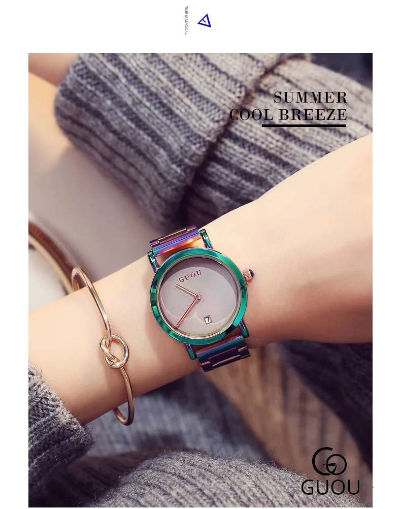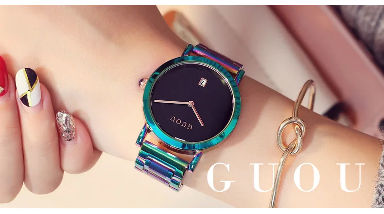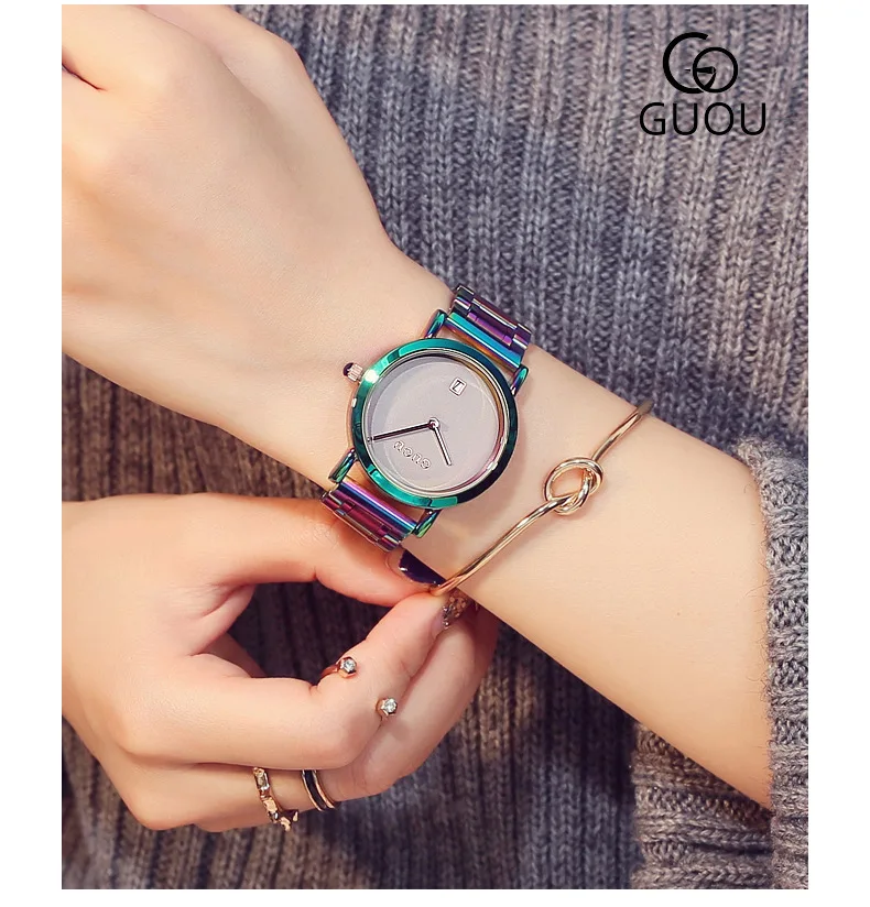 Часы Guou женские из нержавеющей стали, роскошные модные с разноцве...