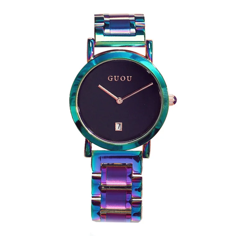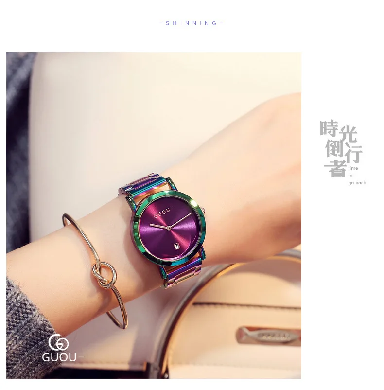 Часы GUOU женские, из нержавеющей стали, с цветным ремешком, фиолет...