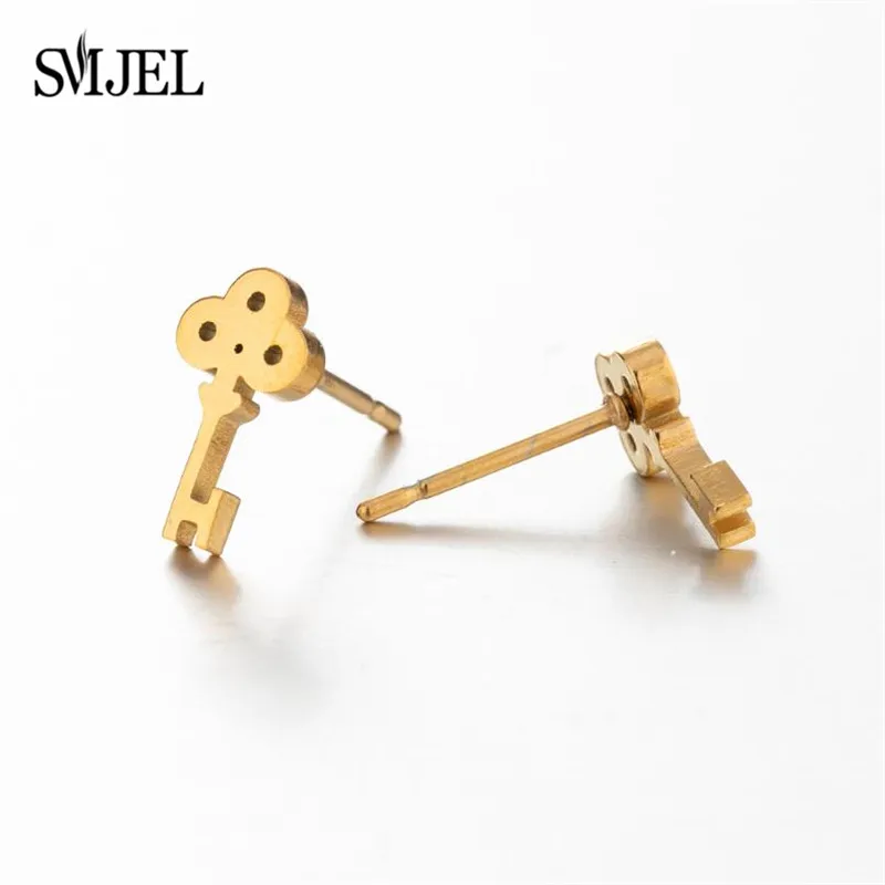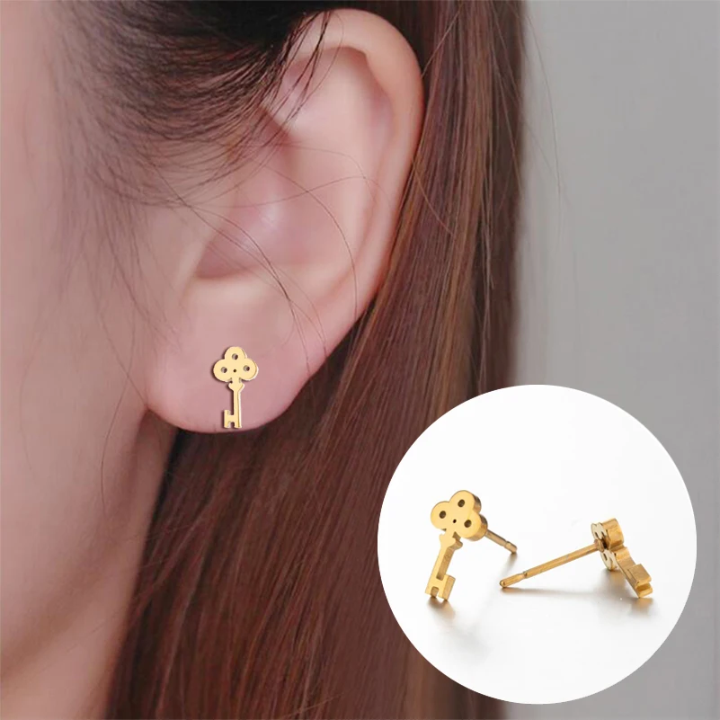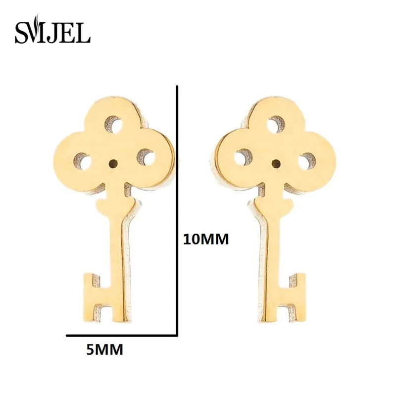Серьги-гвоздики из нержавеющей стали женские, милые модные украшения в форме кота, сердца, короны, Листьев, ключа, карандаша, серьги кнопки