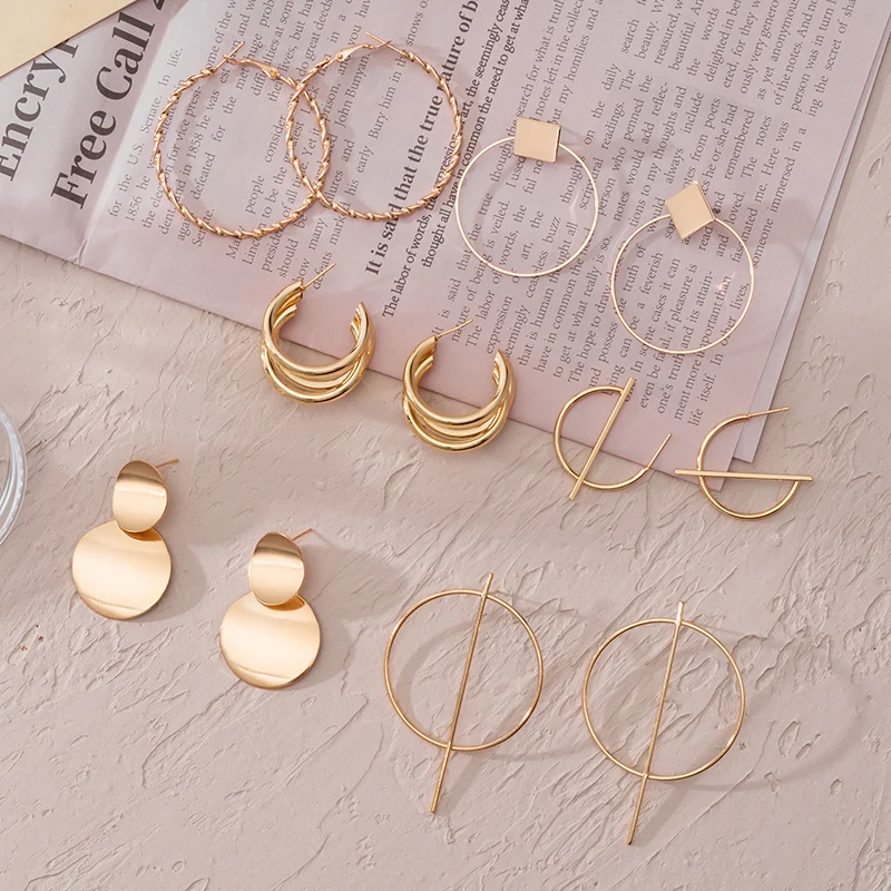 Большие серьги-кольца, корейские геометрические металлические золотые серьги для женщин, женские Ретро висячие серьги 2020, трендовая бижутерия, оптовая продажа