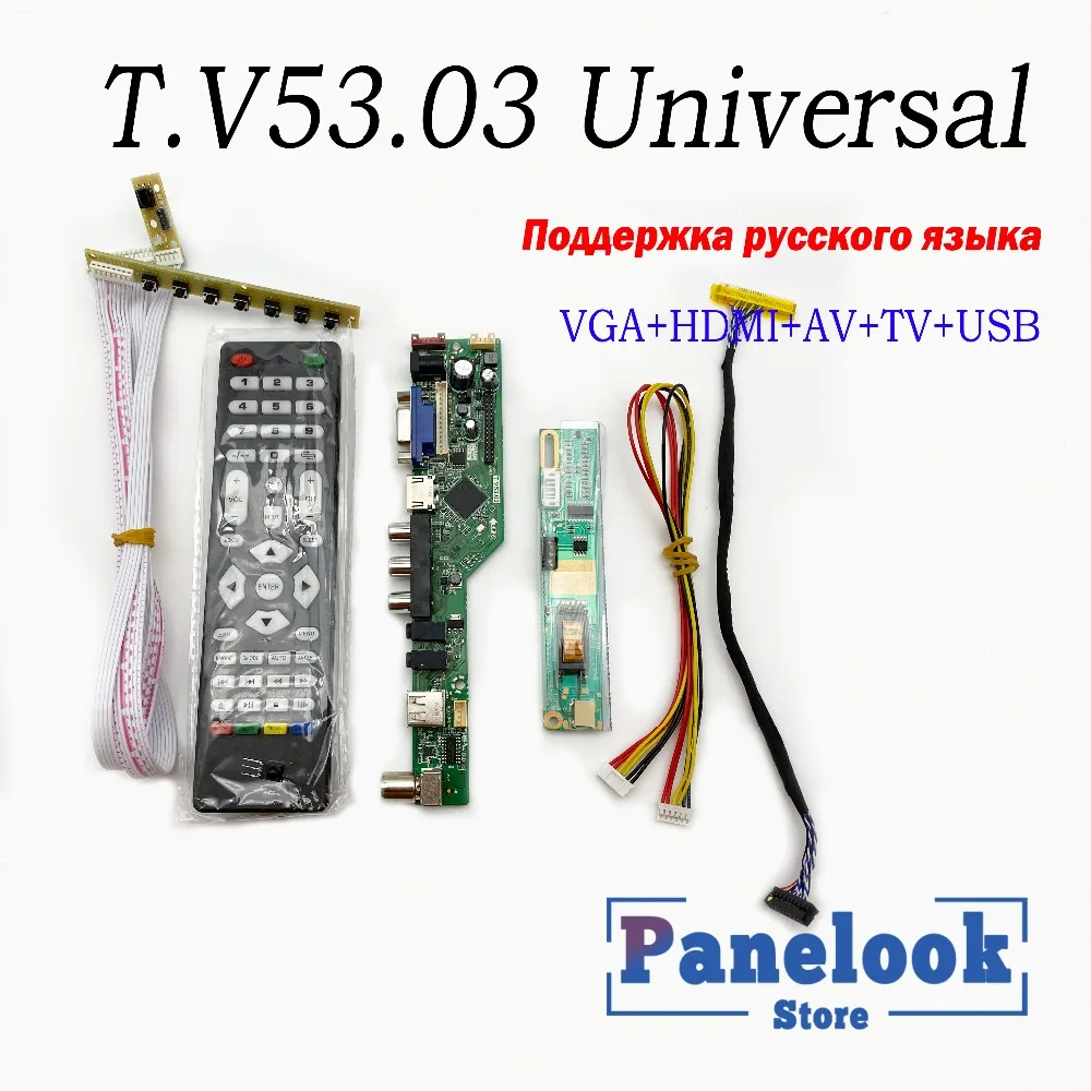 T.V53.03 Универсальный ЖК ТВ контроллер драйвер платы ПКVGAUSB интерфейс + 7 клавишная плата + 1 лампа инвертор