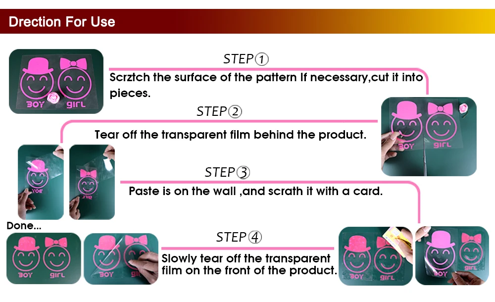 2.Наши наклейки не напечатаны, поэтому они не содержат фона, стены или поверхности, которые вы применяете, будут фоном.
