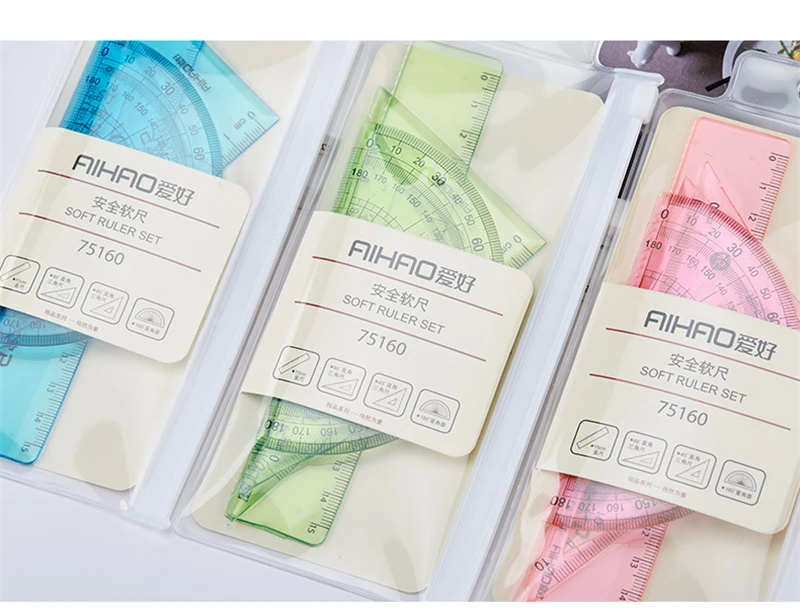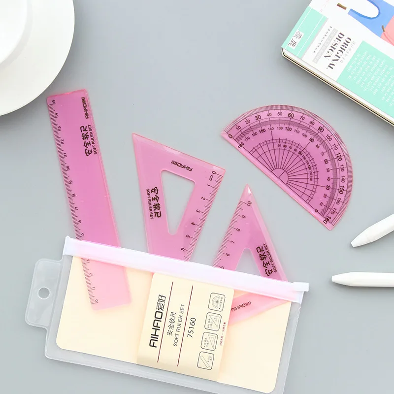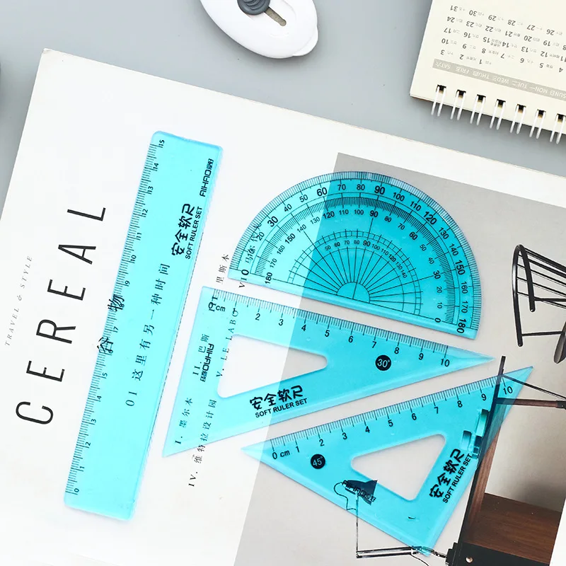 Линейка Геометрическая гибкая, с компасом для математики, транспортир, для школы