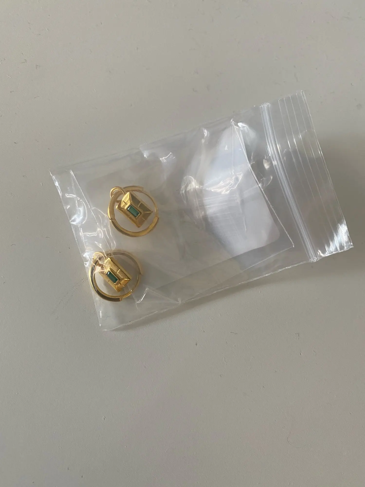 Серьги-кольца женские из серебра 925 пробы с цирконием, зеленые Стразы