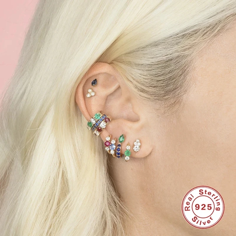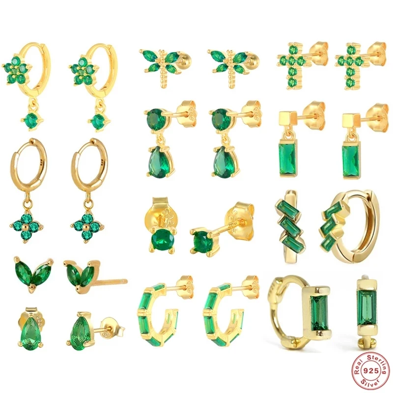 CCFJOYAS зеленого цвета цирконием, серьги-кольца для женщин 925 сте...