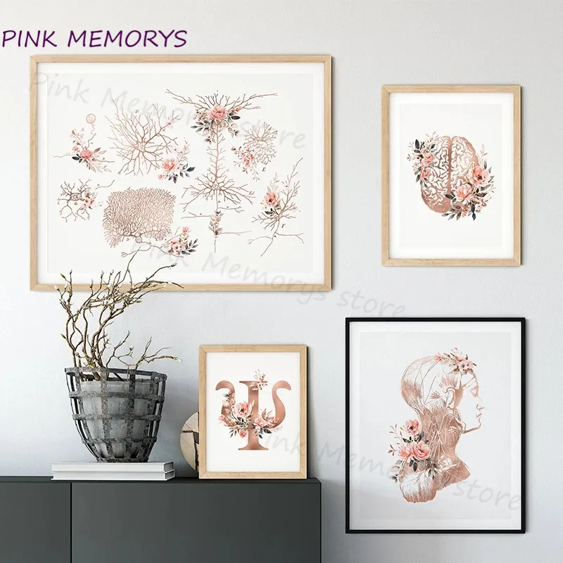 Настенный постер с принтом психологии, мозга, нейрона, шеи, нерва, цветок, медицина, искусство на холсте, живопись, психиатр, украшение для офиса