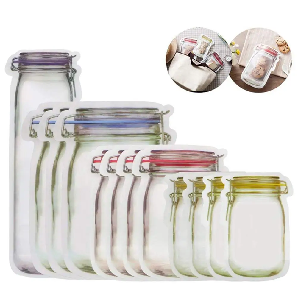 1012 шт банку Форма мешок с застежкой-молнией многоразовые закуски Saver Еда сэндвич, хранилище, сумочка, Кухня органайзер и контейнер для хранения
