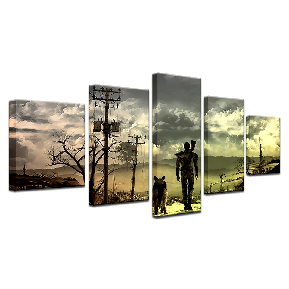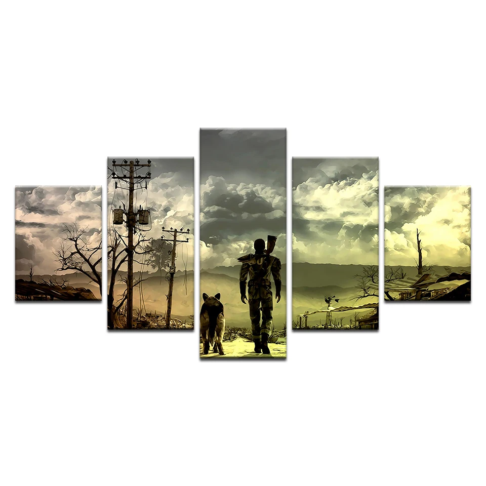 Постеры для игр, холст, живопись, 5 панелей, каллическая игровая станция, Декор, принты, мужчина с собакой, картины для домашнего дизайна