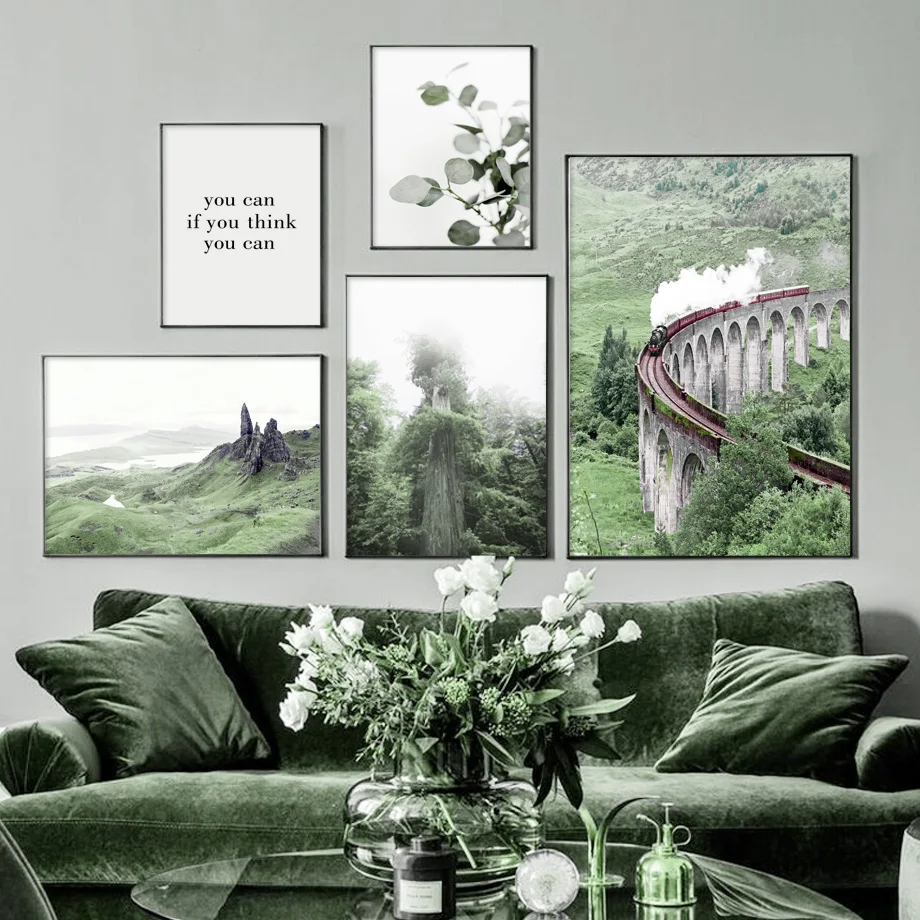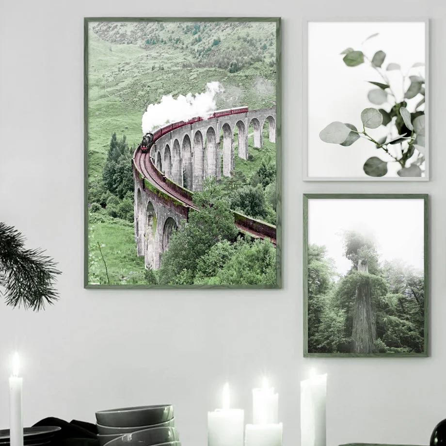 Поезд эвкалипт гигантское дерево Зеленый Горный пейзаж холст картина скандинавские плакаты и принты настенные картины для декора гостиной