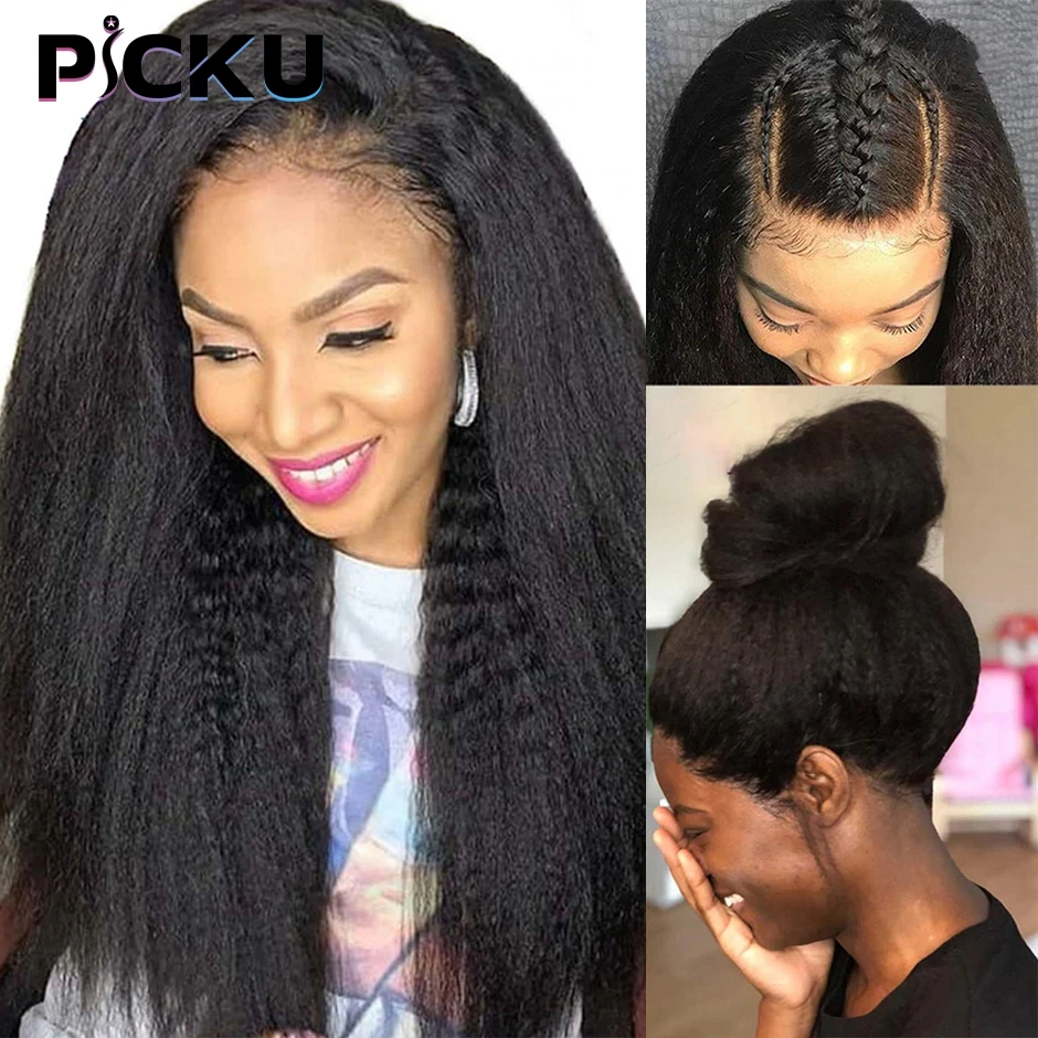 32-дюймовые курчавые прямые парики, полноразмерные фронтальные парики из человеческих волос, прямой парик Yaki, предварительно выщипанный фронтальный парик с детскими волосами