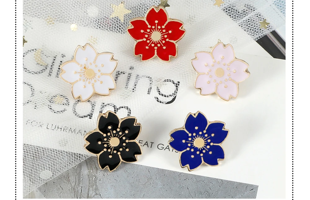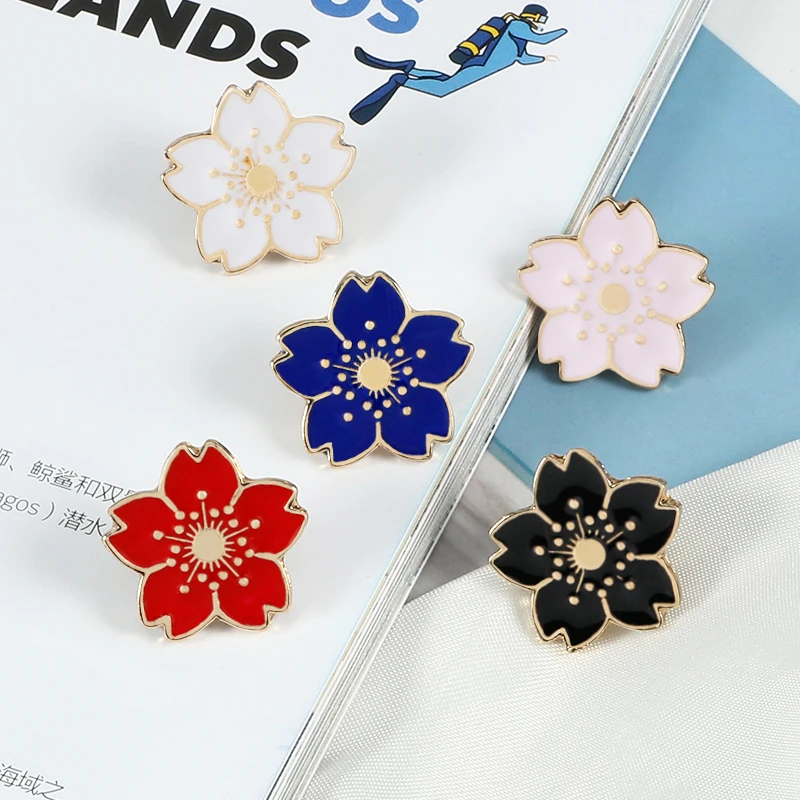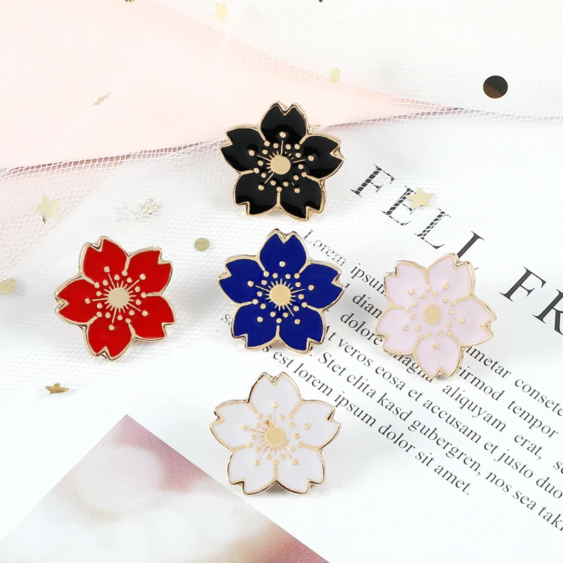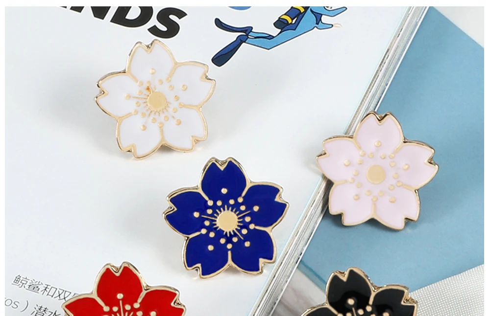 Заколки в японском стиле Мультяшные Красочные Броши Сакура кавайные Цветочные эмалированные заколки Металлические Модные аксессуары значки на сумку и лацкан