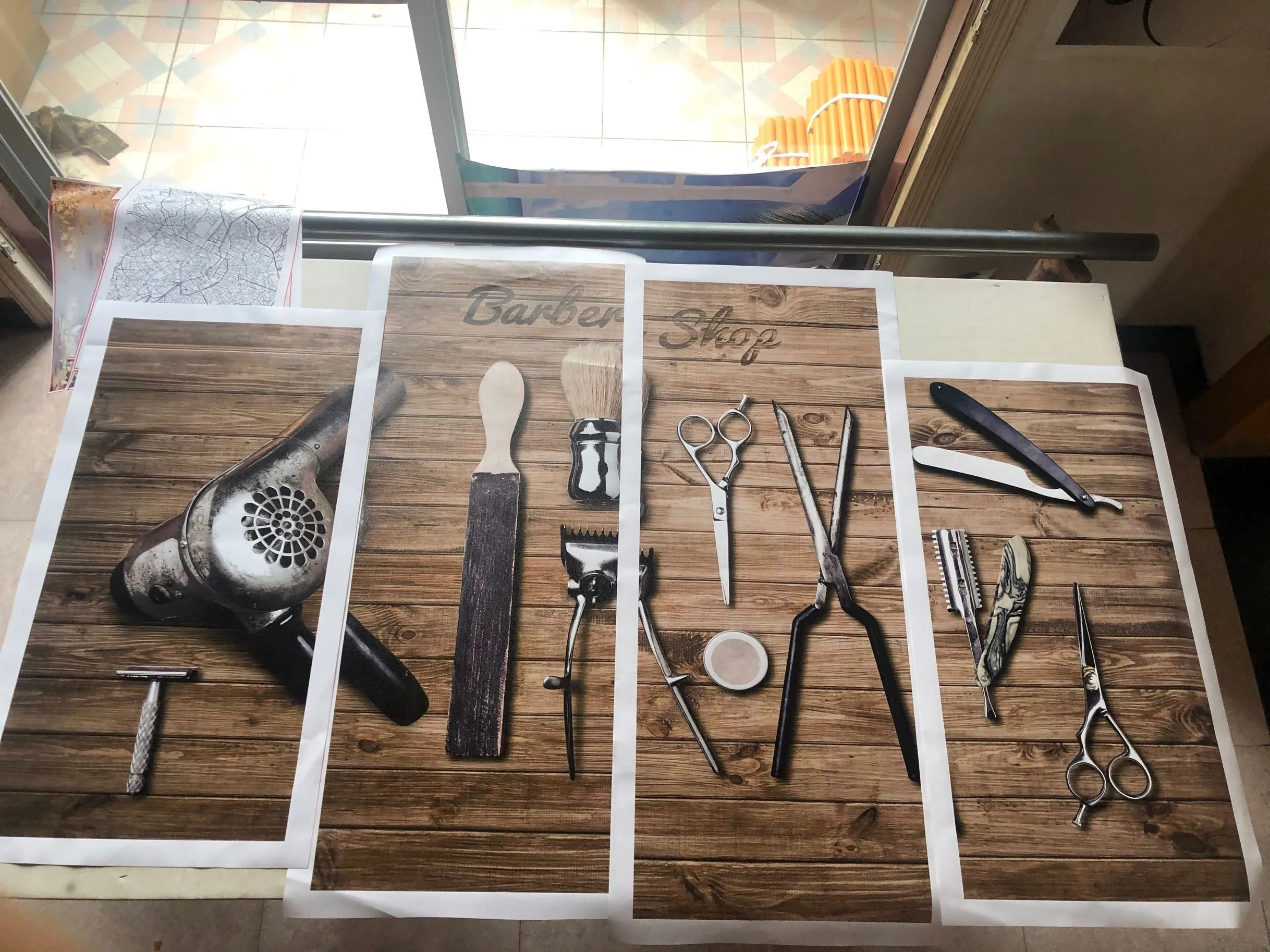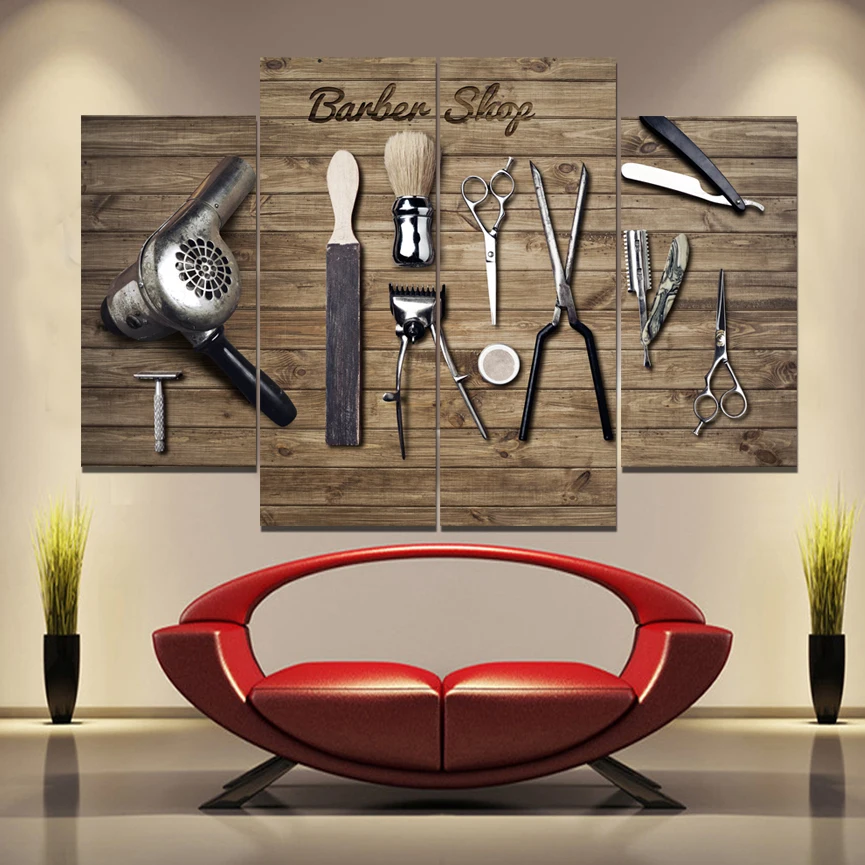 Парикмахерские инструменты, безрамные картины на холсте, 4 шт., Hd печать, картина на стену, современный домашний парикмахерский декор, плакат